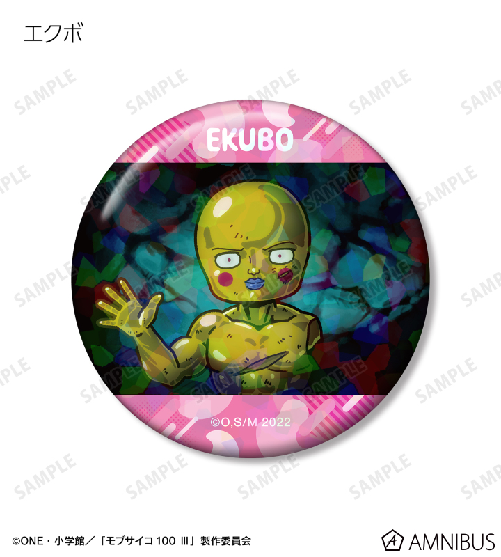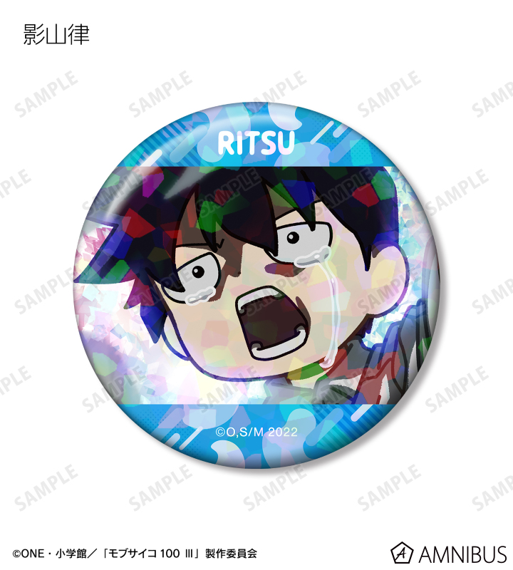 影山茂夫、霊幻新隆、エクボ、影山律、花沢輝気、芹沢克也の印象的なシーンをそのままデフォルメで再現し、ホログラム加工を施した缶バッジに仕上げました。