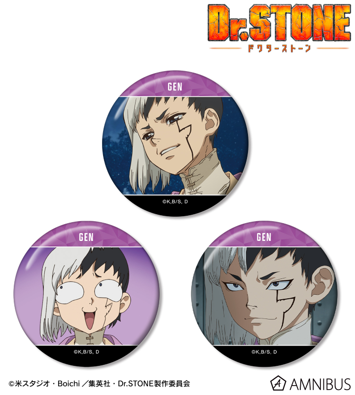 TVアニメ「Dr.STONE」より、缶バッジ3個セットの登場です。