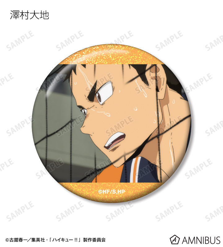 日向翔陽、影山飛雄、月島 蛍、山口 忠、西谷 夕、田中龍之介、澤村大地、菅原孝支、東峰 旭、黒尾鉄朗、孤爪研磨、宮 侑、宮 治、北 信介、角名倫太郎の印象的なシーンをホログラム加工を施した缶バッジに仕上げました。