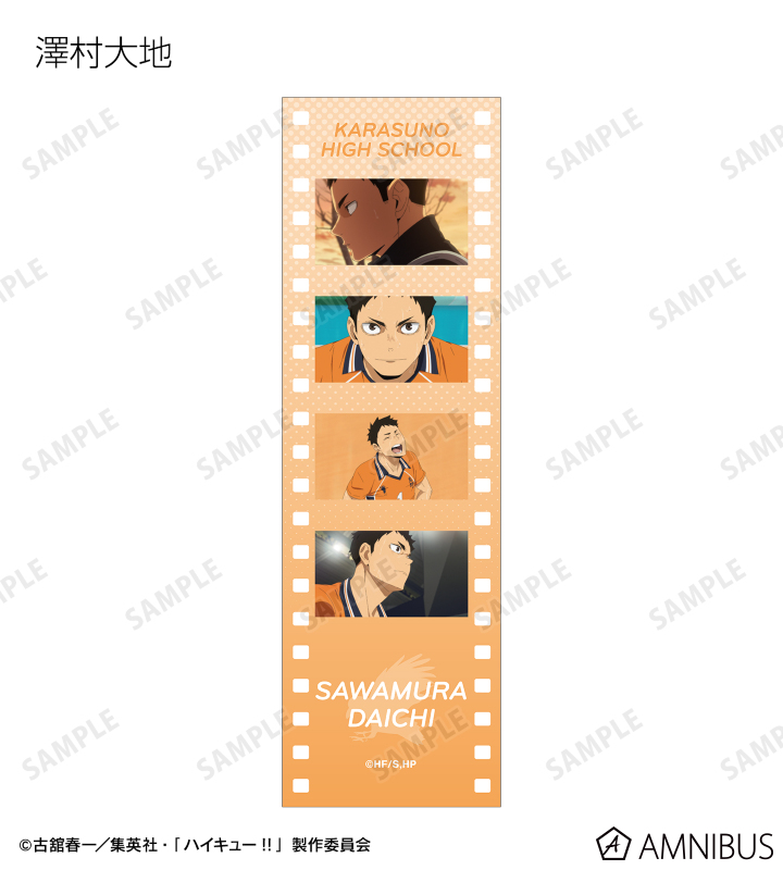 日向翔陽、影山飛雄、月島 蛍、山口 忠、西谷 夕、田中龍之介、澤村大地、菅原孝支、東峰 旭、黒尾鉄朗、孤爪研磨、宮 侑、宮 治、北 信介、角名倫太郎の印象的なシーンを縦長のビジュアルカードに仕上げました。