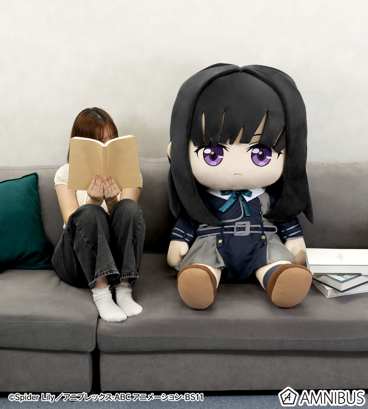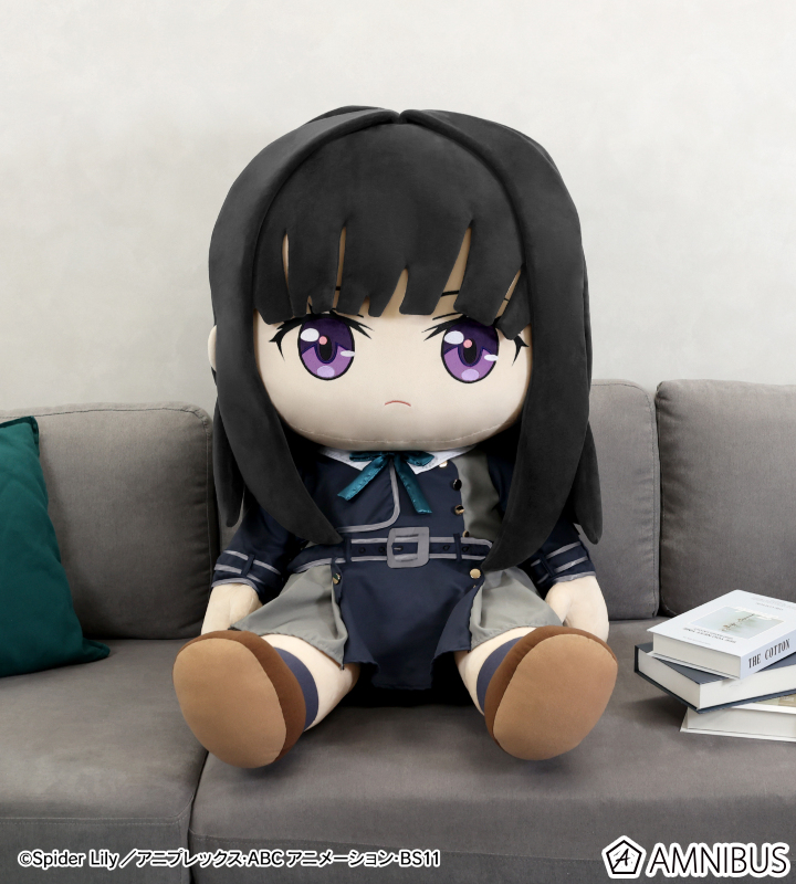 「たきな」のクールな表情そのままにデフォルメし、高さ約95cm・幅約50cmの思わず抱きしめたくなるほどすーぱー大きなぬいぐるみに仕上げました。