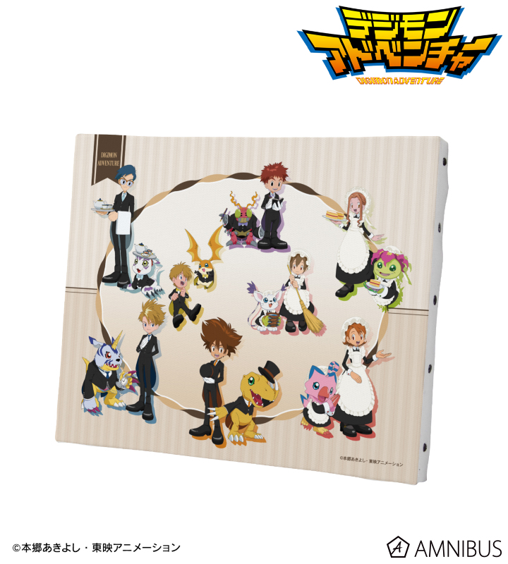 八神太一、アグモン、石田ヤマト、ガブモン、武之内空、ピヨモン、泉光子郎、テントモン、太刀川ミミ、パルモン、城戸丈、ゴマモン、高石タケル、パタモン、八神ヒカリ、テイルモンの描き下ろしイラストをキャンバスボードに仕上げました。