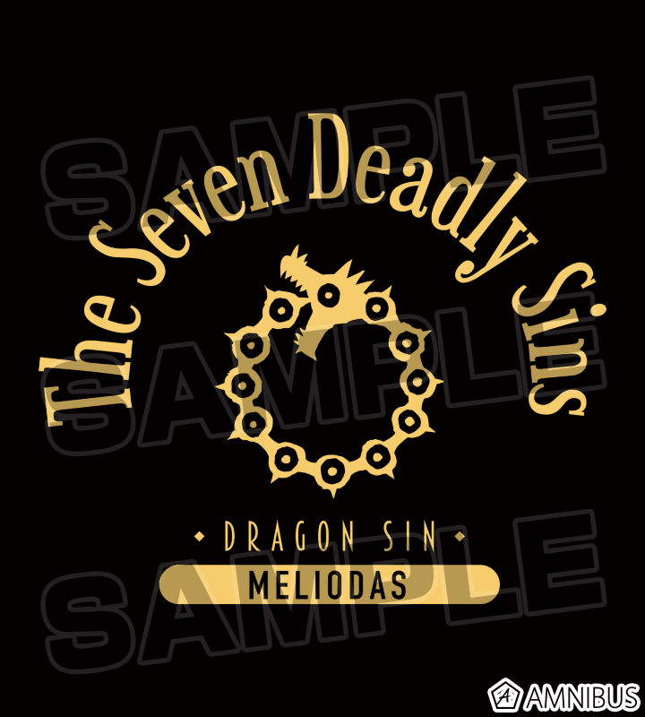メリオダスの名前や「憤怒の罪」のマーク、罪名、作品タイトルを組み合わせ、カレッジ風のデザインに仕上げました。