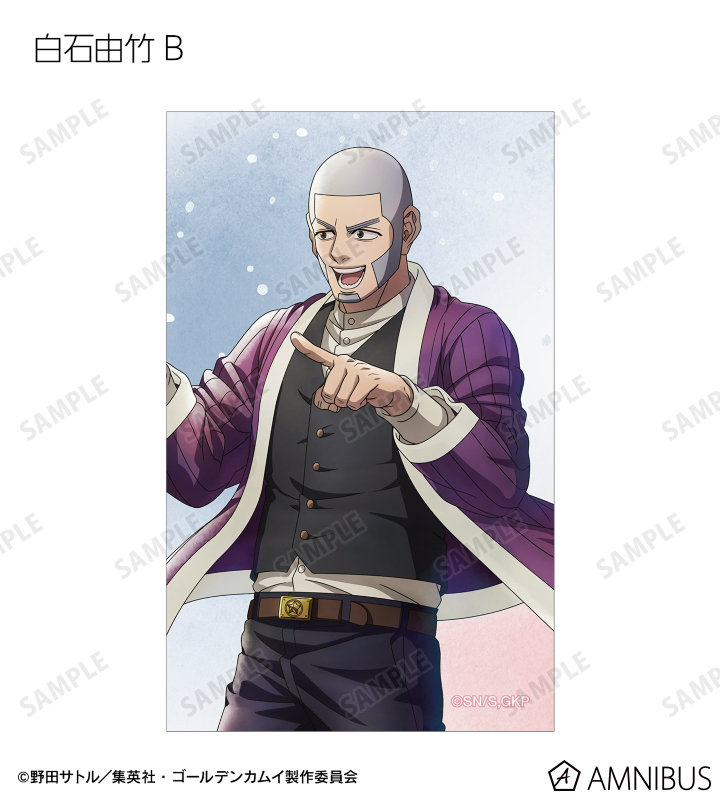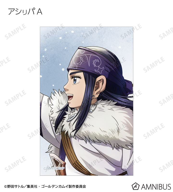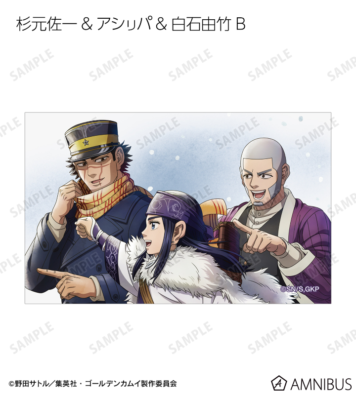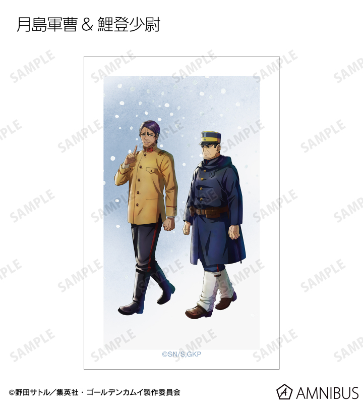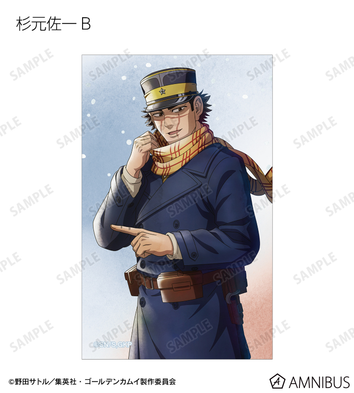 杉元佐一、アシㇼパ、白石由竹、尾形百之助、月島軍曹、鯉登少尉の描き下ろしイラストをイラストカードに仕上げました。