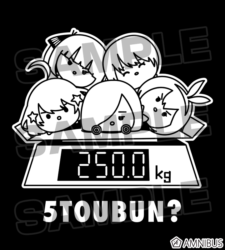 原作コミックス 第2巻巻末のオマケ漫画の量りに乗った五つ子のちびキャラをイラストに描き起こし、フロントにレイアウトしました。
