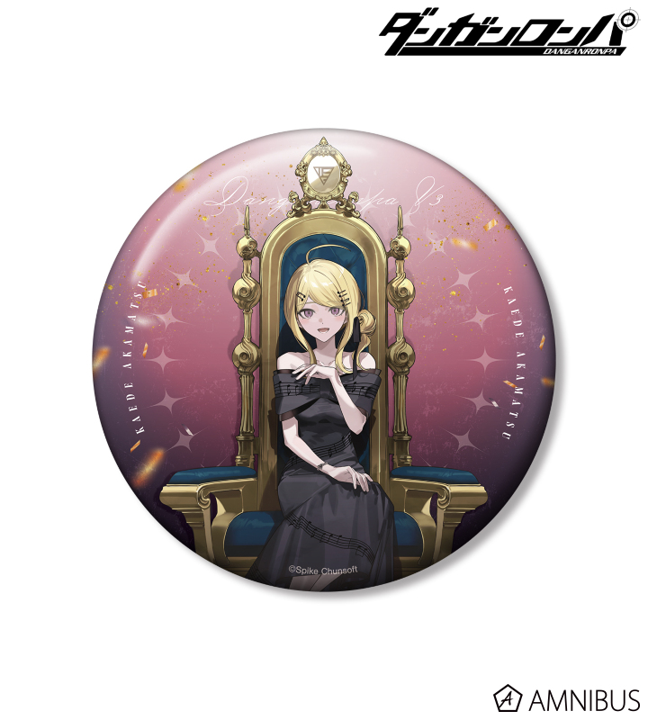『ダンガンロンパシリーズ』×「およ」のコラボレーションアイテム「およさんイラスト 赤松楓 玉座ver. 100mm缶バッジ」の登場です。