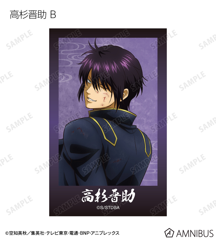 坂田銀時、志村新八、神楽、近藤勲、土方十四郎、沖田総悟、桂小太郎、高杉晋助、神威の描き下ろしイラストをイラストカードに仕上げました。