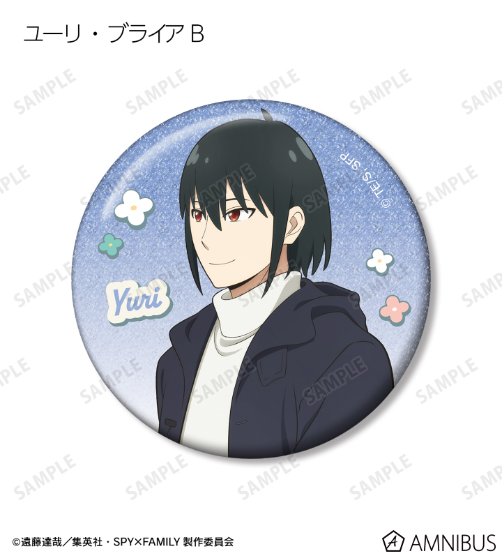 ロイド・フォージャー、アーニャ・フォージャー、ヨル・フォージャー、ボンド・フォージャー、ユーリ・ブライア、ダミアン・デズモンド、ベッキー・ブラックベルの描き下ろしイラストをグリッター加工を施した缶バッジに仕上げました。