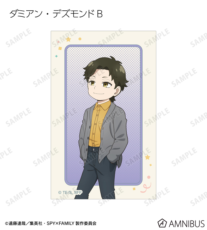 ロイド・フォージャー、アーニャ・フォージャー、ヨル・フォージャー、ボンド・フォージャー、ユーリ・ブライア、ダミアン・デズモンド、ベッキー・ブラックベルの描き下ろしイラストをイラストカードに仕上げました。