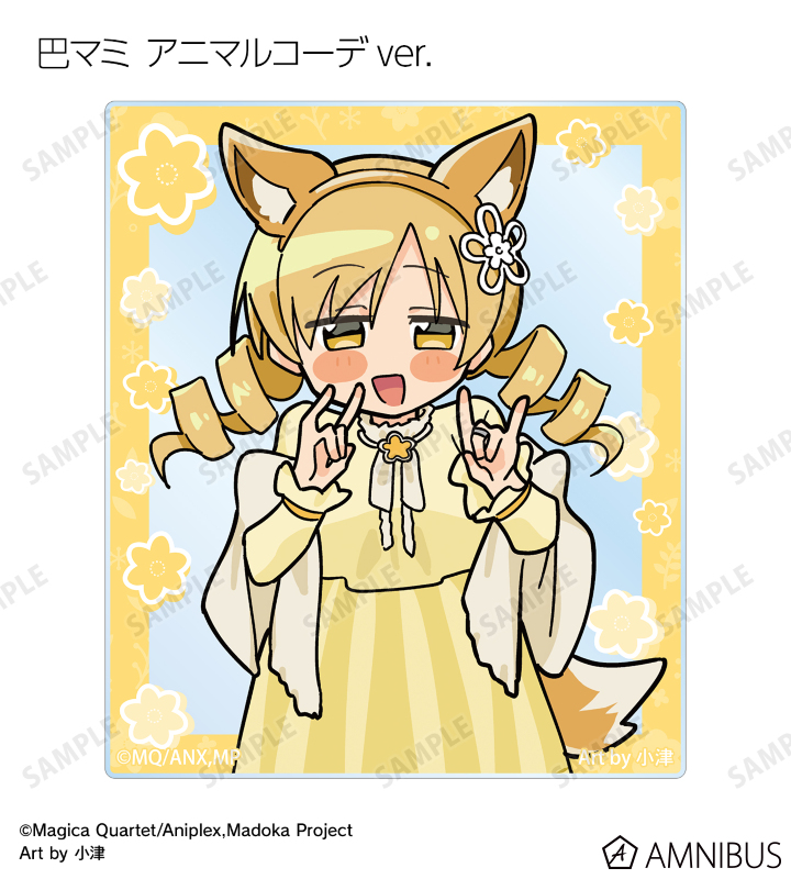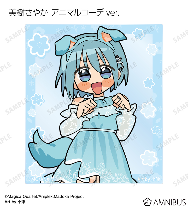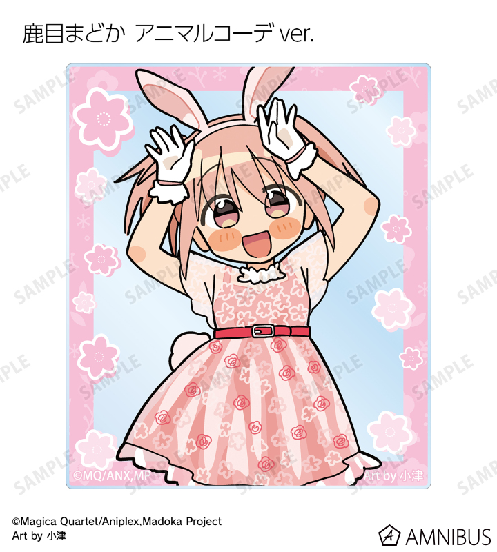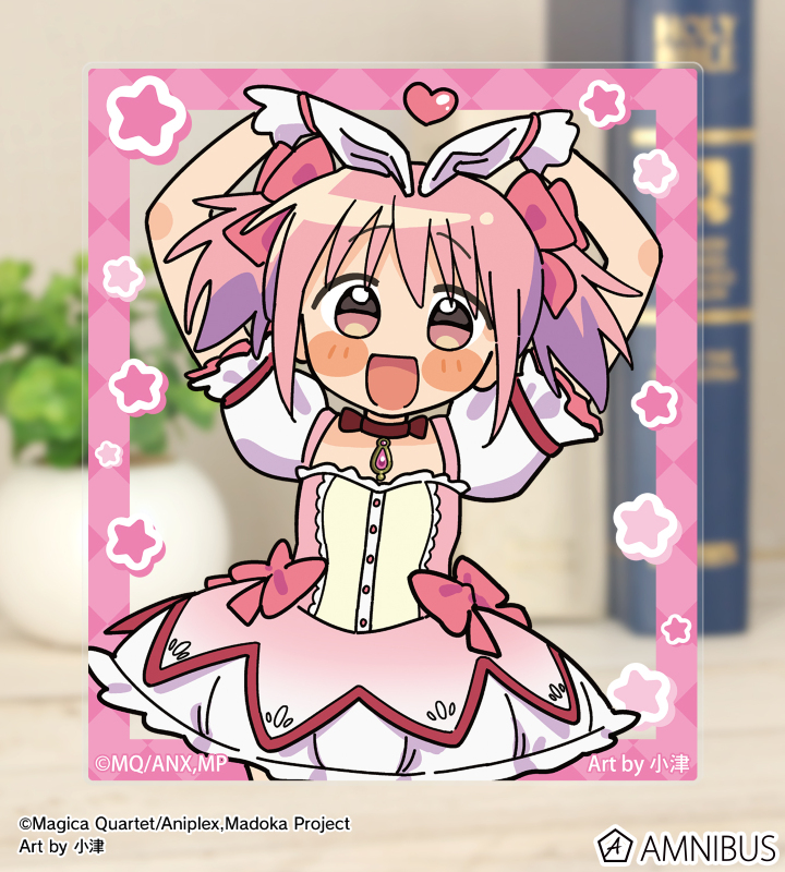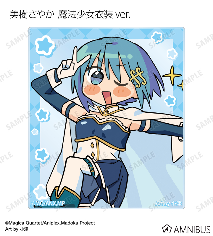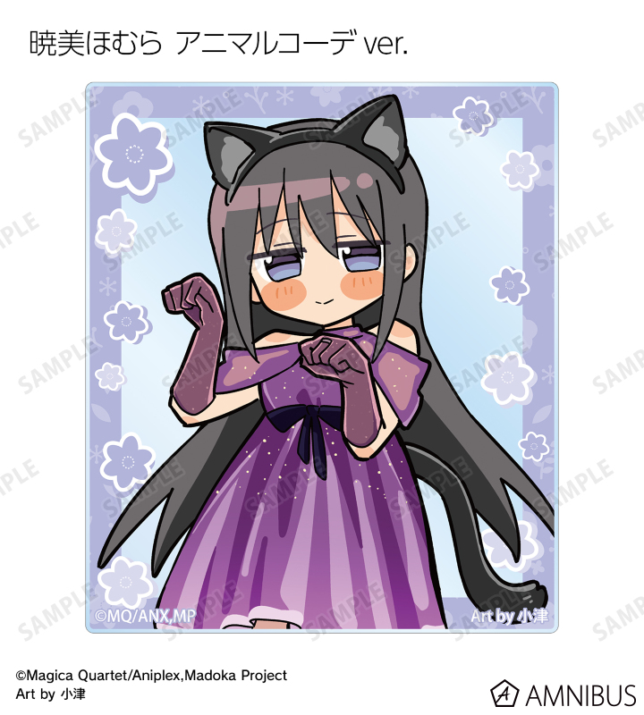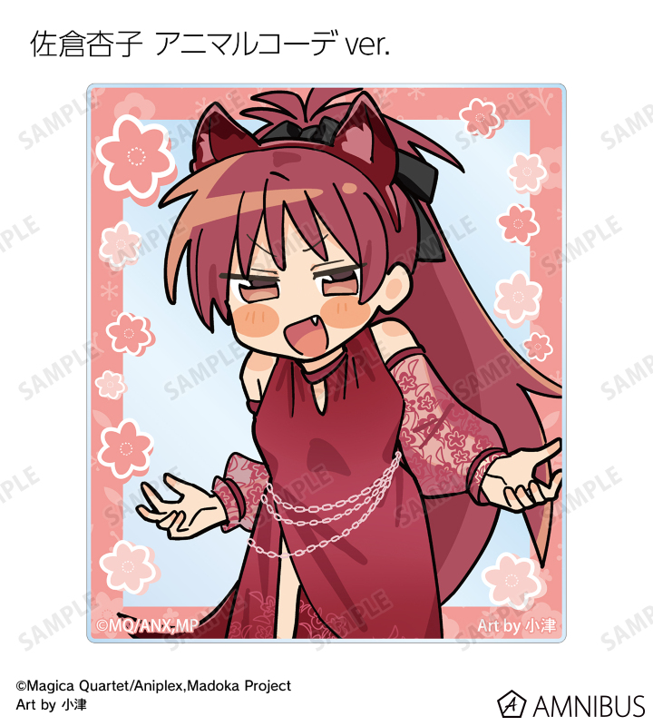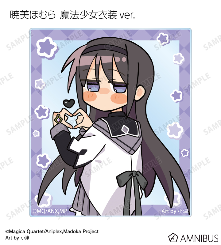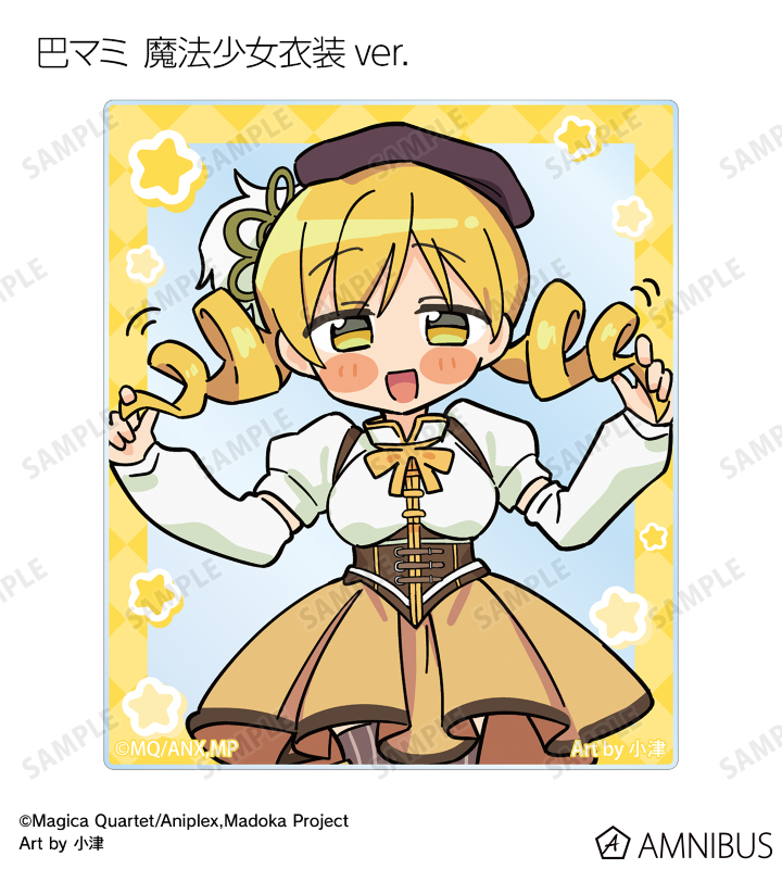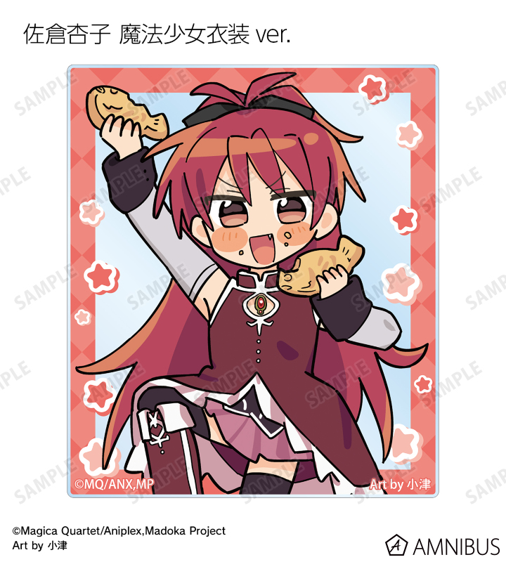小津さん描き起こしちびキャライラストの鹿目まどか、暁美ほむら、巴マミ、美樹さやか、佐倉杏子をメインにデザインし、アクリルカードに仕上げました。