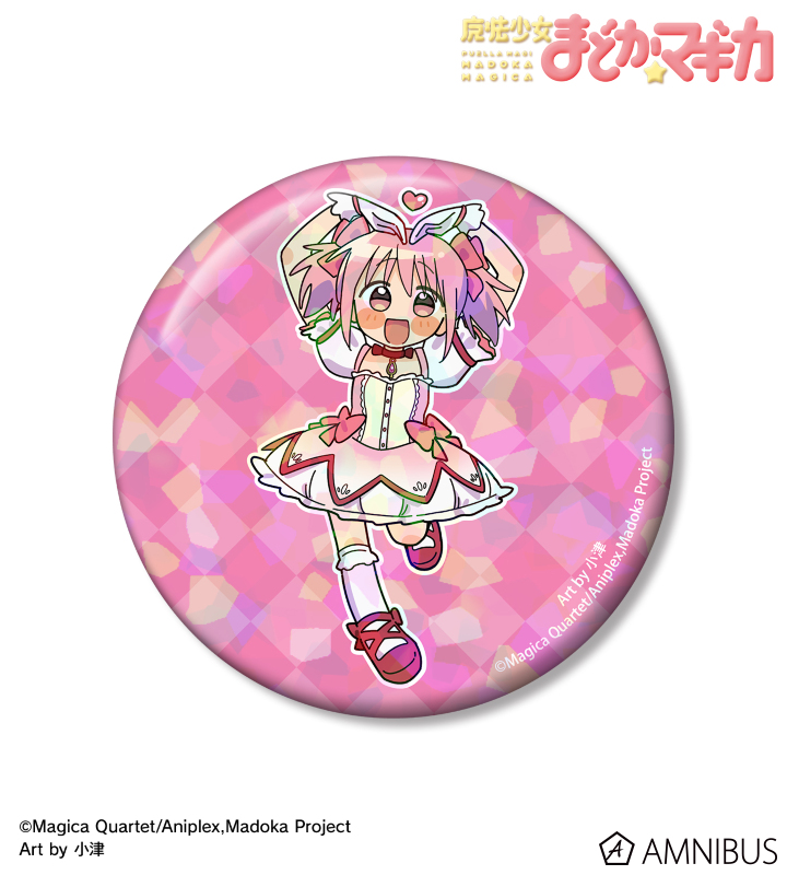 TVアニメ「魔法少女まどか☆マギカ」×「イラストレーター小津」のコラボレーションアイテム「描き起こし 鹿目まどか 魔法少女衣装ver. Art by 小津 ホログラム75mm缶バッジ」の登場です。