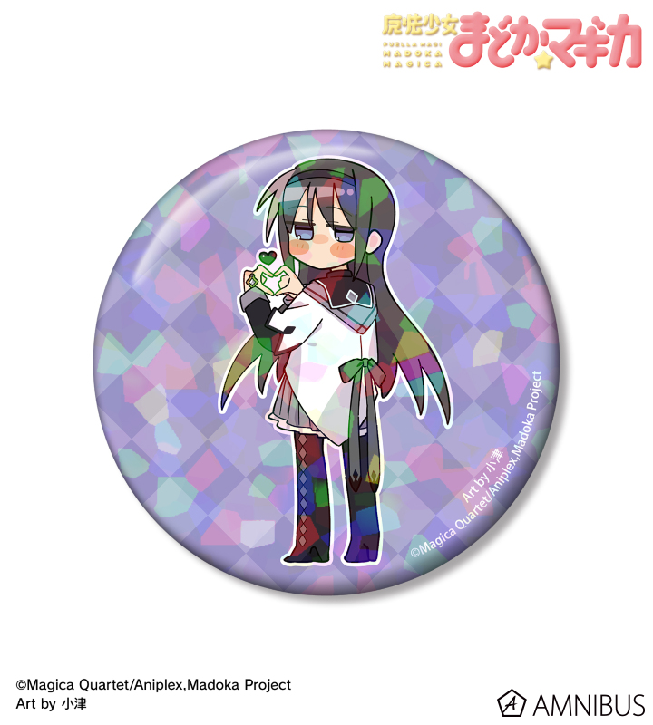 小津さん描き起こしちびキャライラストの暁美ほむらをメインにデザインし、ホログラム加工を施した缶バッジに仕上げました。
