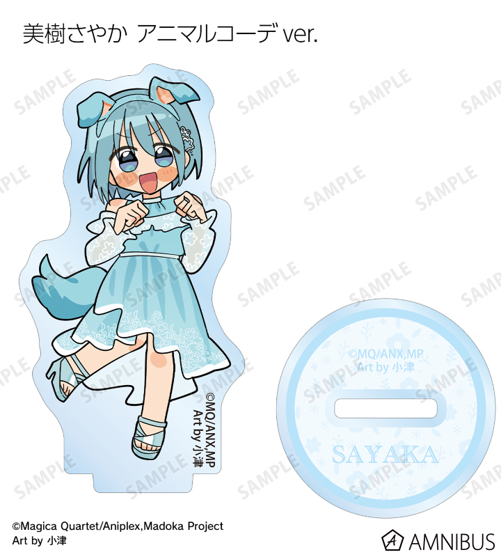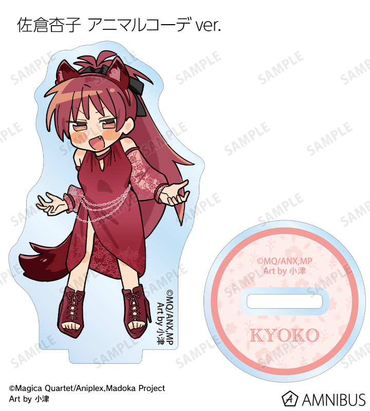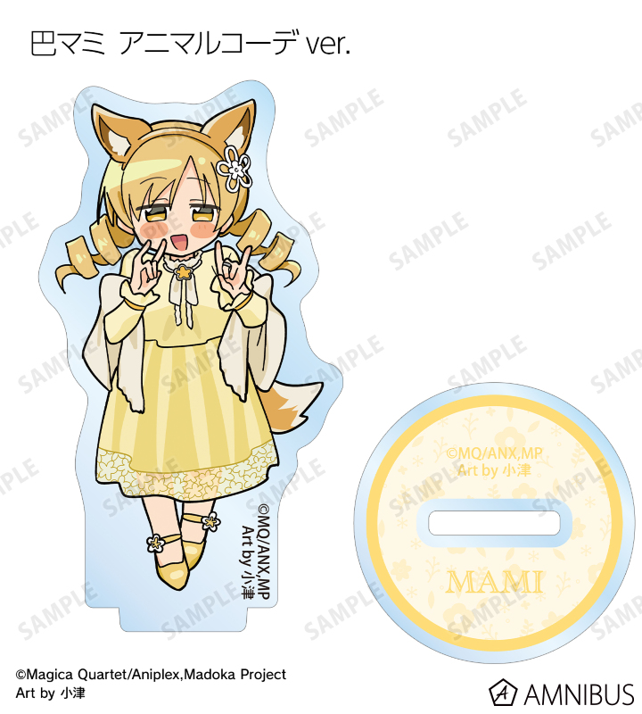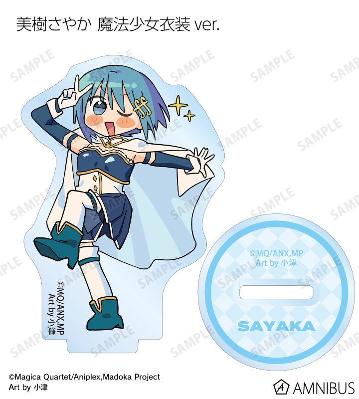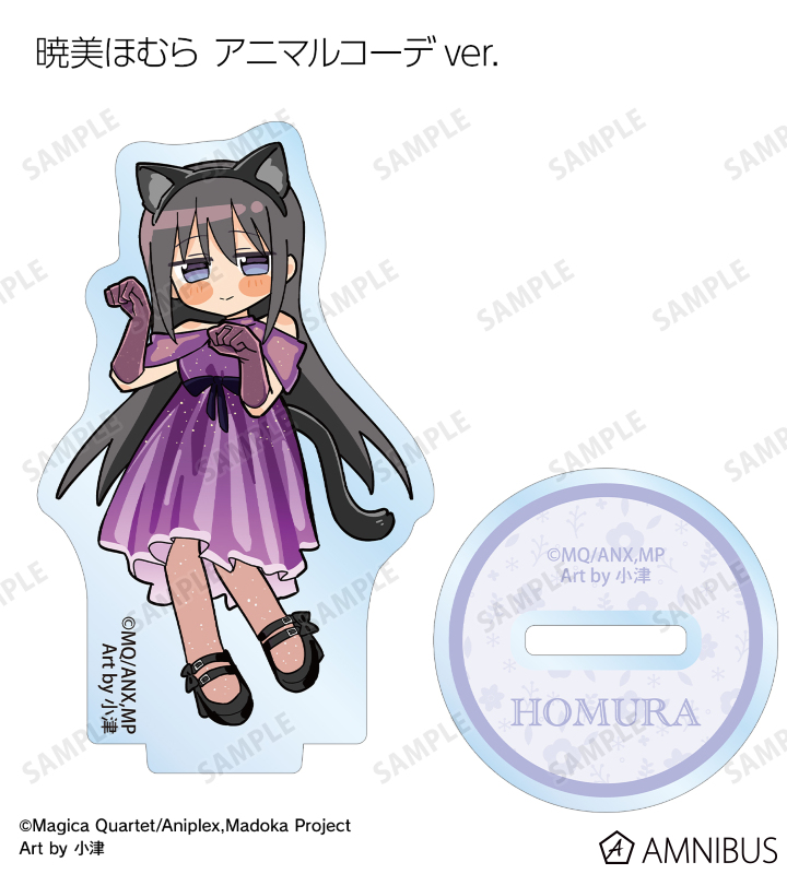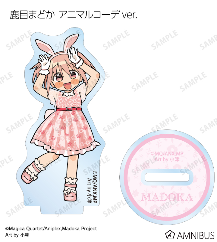 小津さん描き起こしちびキャライラストの鹿目まどか、暁美ほむら、巴マミ、美樹さやか、佐倉杏子をメインにデザインし、アクリルスタンドに仕上げました。