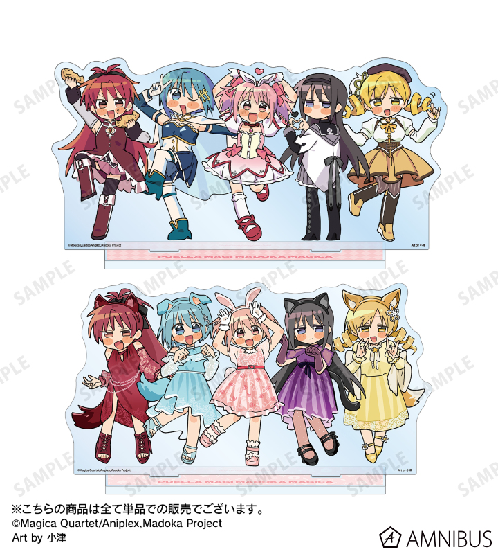 TVアニメ「魔法少女まどか☆マギカ」×「イラストレーター小津」のコラボレーションアイテム「描き起こし 集合 魔法少女衣装ver. Art by 小津 BIGアクリルスタンド」の登場です。