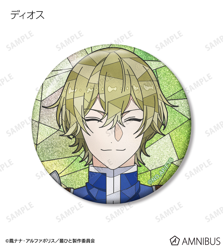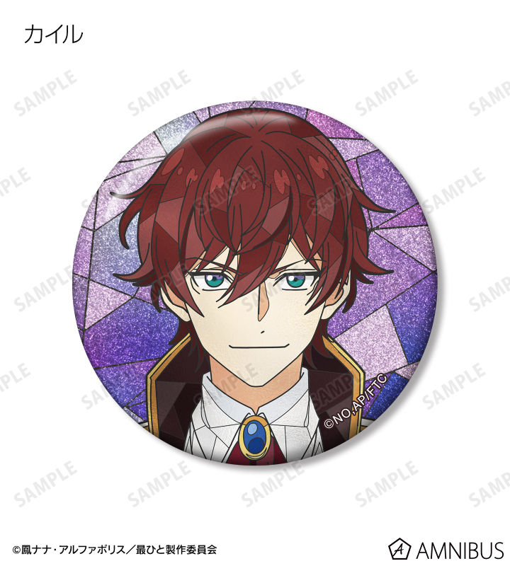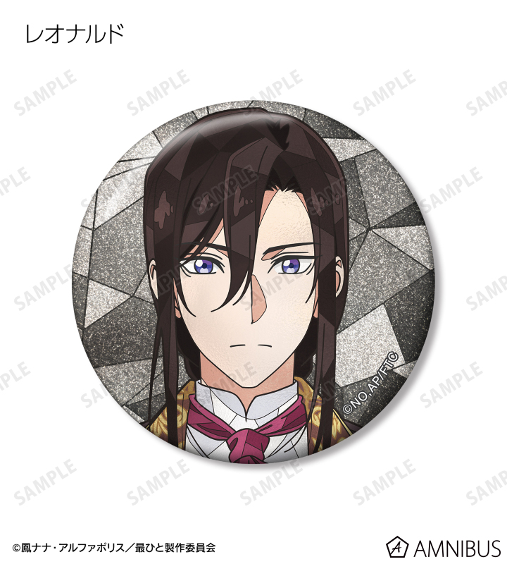 スカーレット、ジュリアス、レオナルド、ナナカ、シグルド、ディアナ、ディオス、カイル、テレネッツァのイラストを新たなタッチで魅力的に表現し、グリッター加工を施した缶バッジに仕上げました。