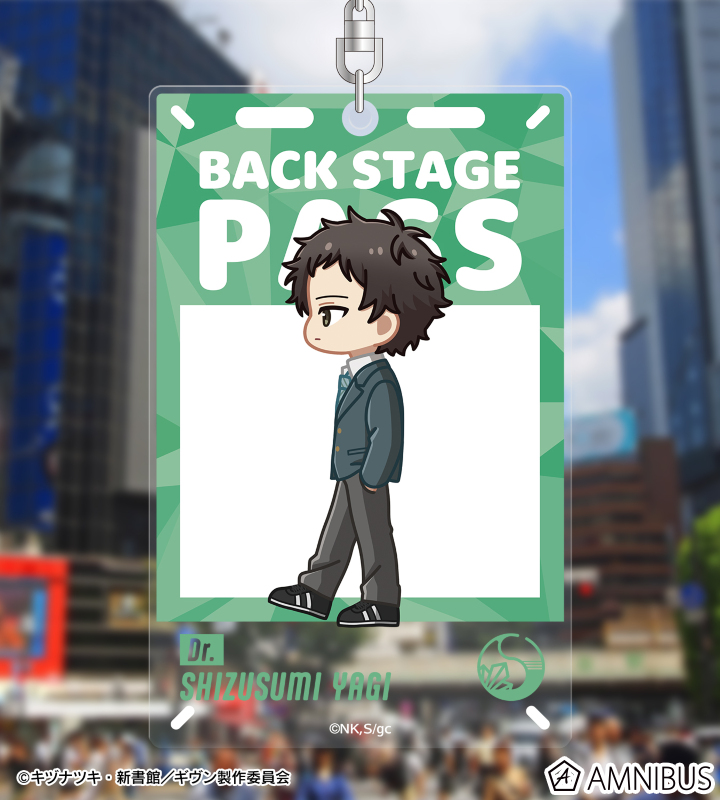 八木 玄純が歩いているちびキャラを新たに描き起こし、バックステージパス風のBIGなアクリルキーホルダーに仕上げました。