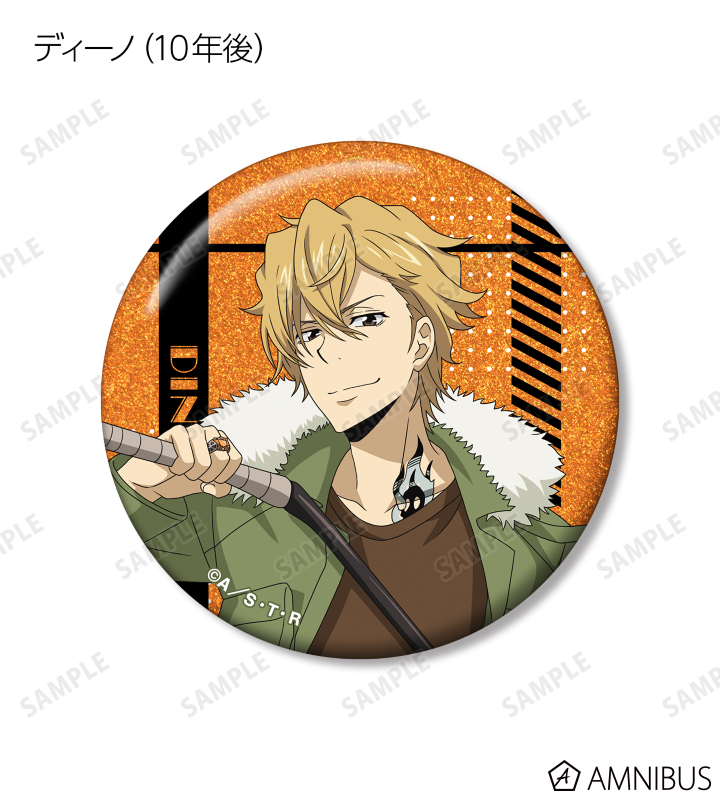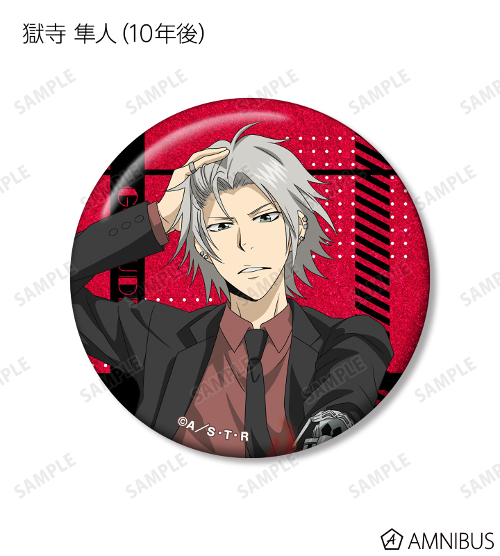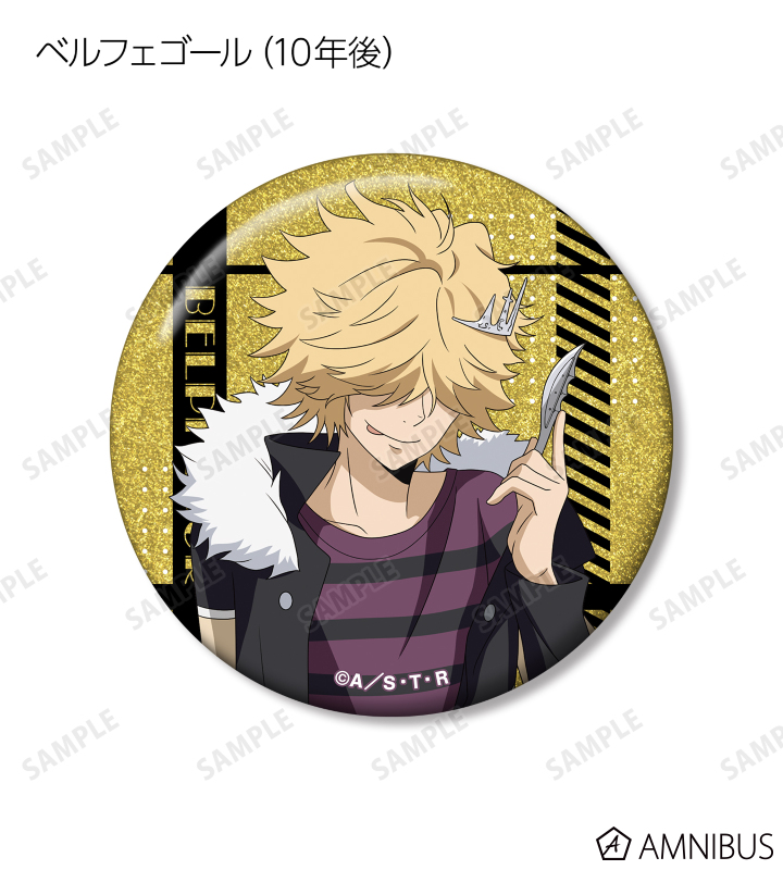 沢田 綱吉、リボーン、獄寺 隼人(10年後)、山本 武(10年後)、雲雀 恭弥(10年後)、六道 骸(10年後)、ディーノ(10年後)、XANXUS(10年後)、スペルビ・スクアーロ(10年後)、ベルフェゴール(10年後)、フラン、白蘭の描き下ろしイラストをグリッター加工を施した缶バッジに仕上げました。
