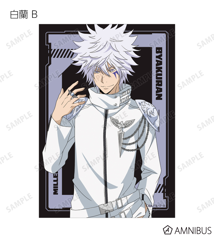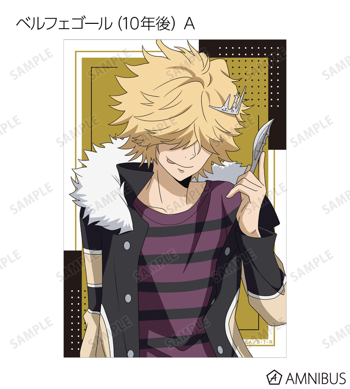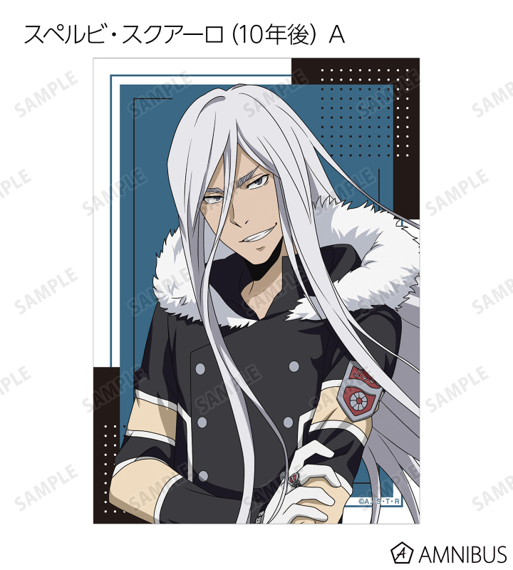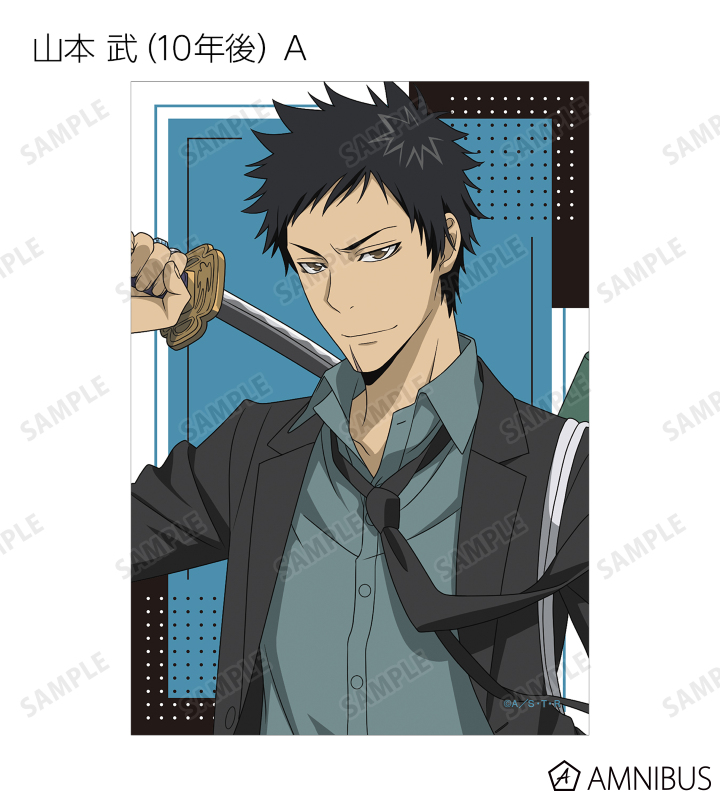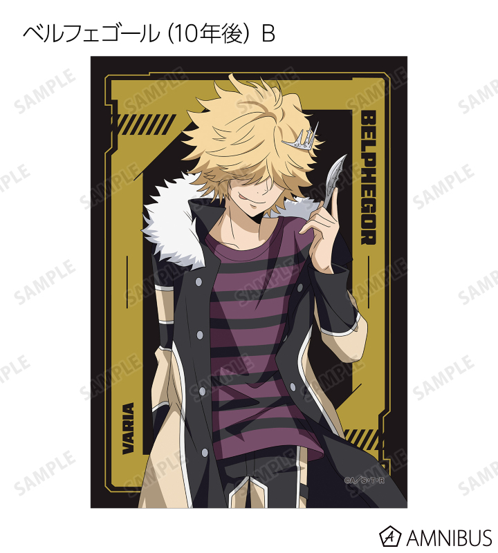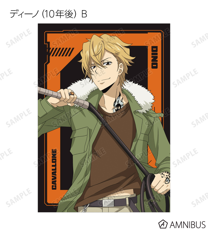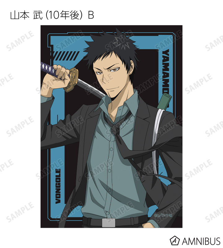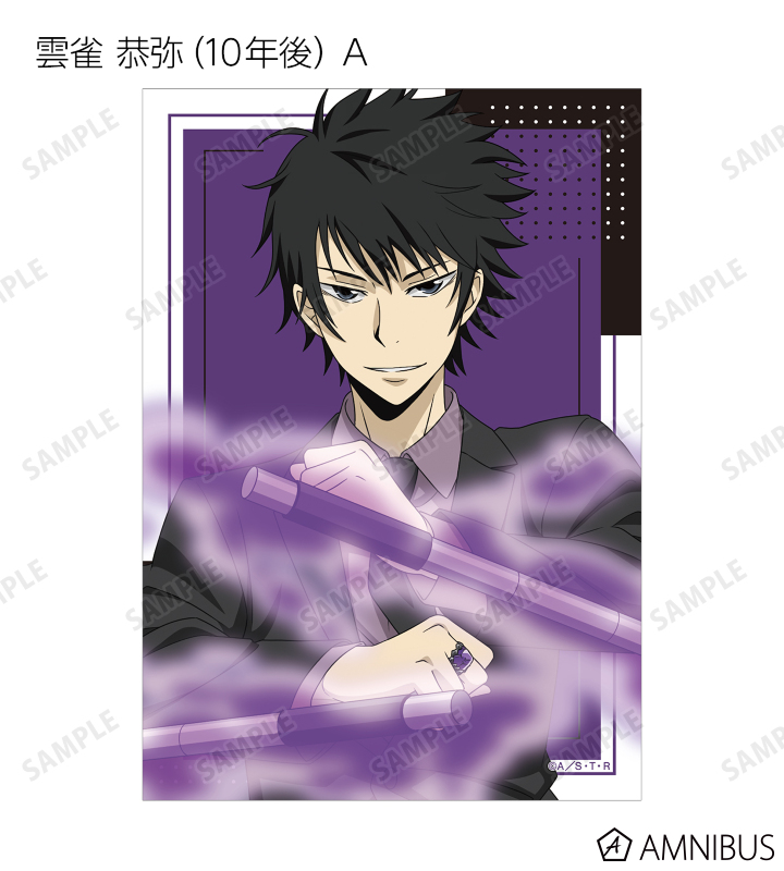 沢田 綱吉、リボーン、獄寺 隼人(10年後)、山本 武(10年後)、雲雀 恭弥(10年後)、六道 骸(10年後)、ディーノ(10年後)、XANXUS(10年後)、スペルビ・スクアーロ(10年後)、ベルフェゴール(10年後)、フラン、白蘭の描き下ろしイラストをブロマイドに仕上げました。