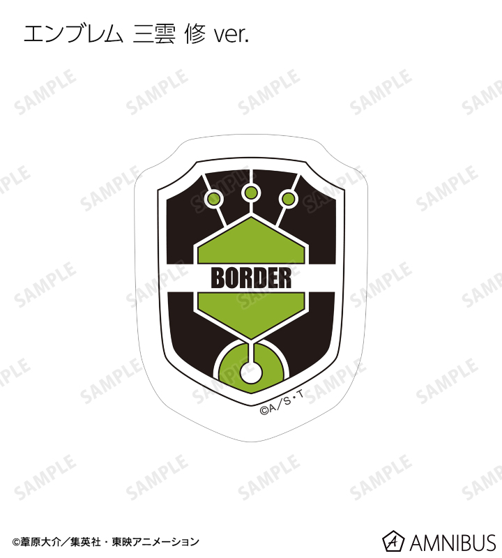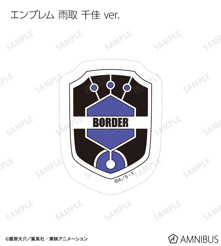 三雲 修、空閑 遊真、雨取 千佳、ヒュース、宇佐美 栞、木崎 レイジ、迅 悠一、小南 桐絵、烏丸 京介、林藤 陽太郎、雷神丸のイラスト、エンブレムをフレークシールに仕上げました。