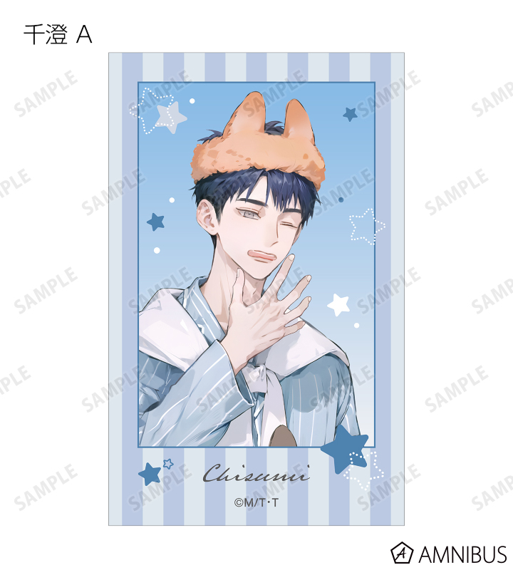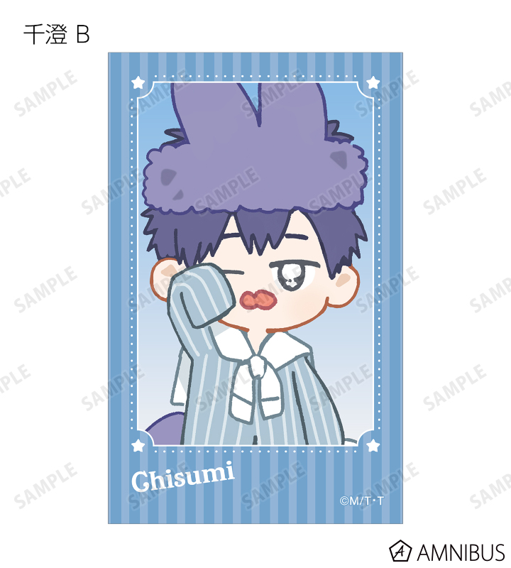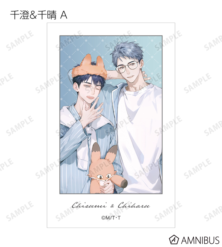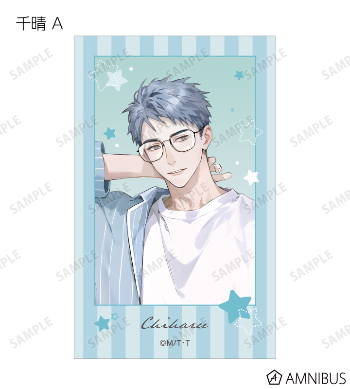 MAE先生描き下ろしイラスト、ちびキャライラストの千澄、千晴、陸野 延賀、景山 侑をイラストカードに仕上げました。