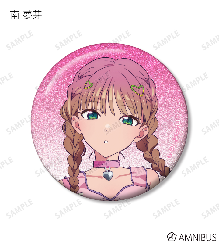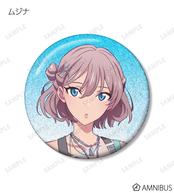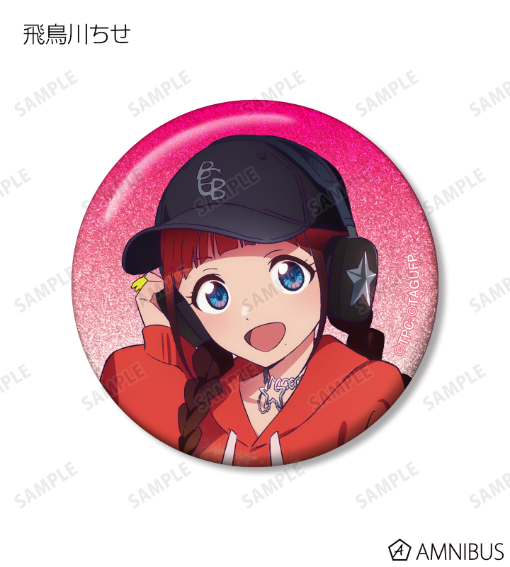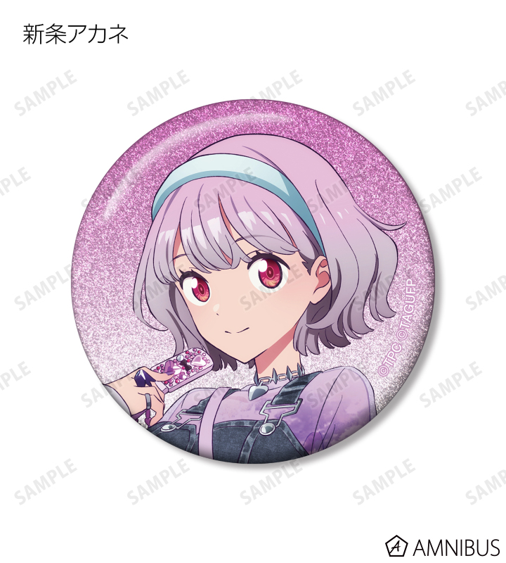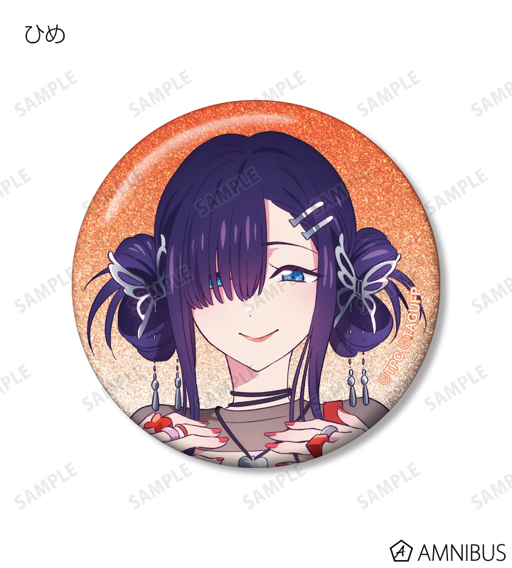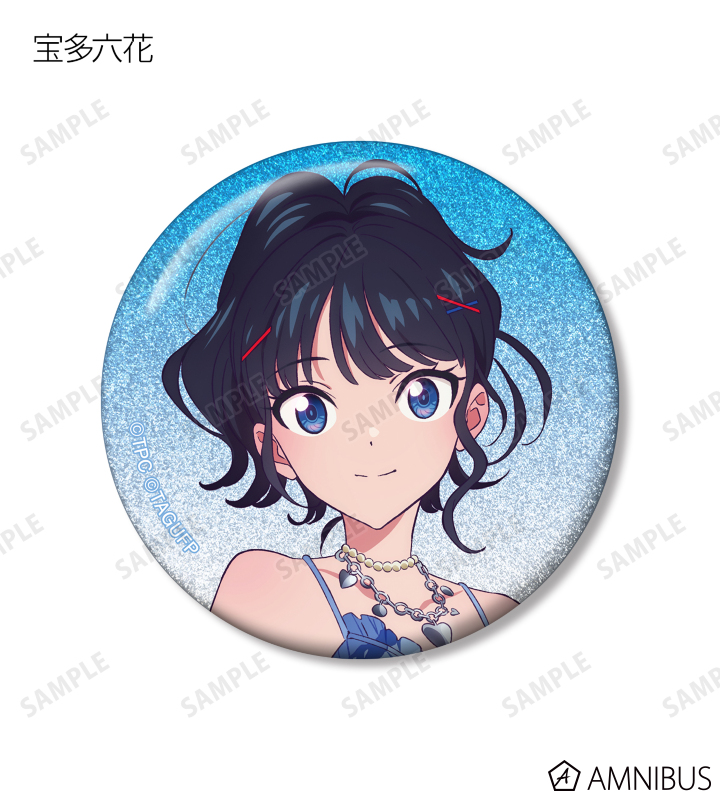 宝多六花、新条アカネ、南 夢芽、飛鳥川ちせ、2代目、ムジナ、ひめの描き下ろしイラストをグリッター加工を施した缶バッジに仕上げました。
