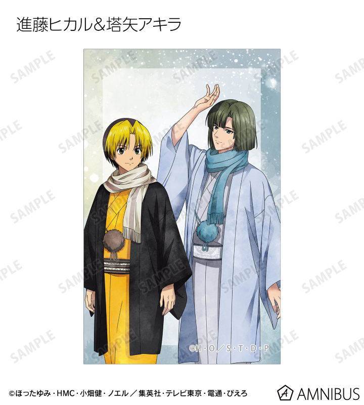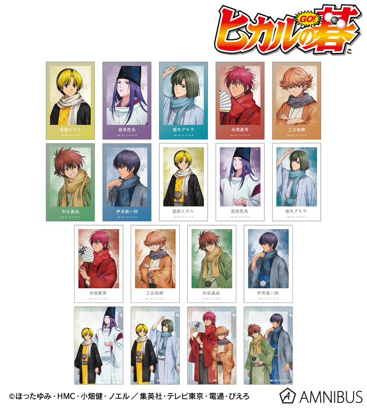 進藤ヒカル、藤原佐為、塔矢アキラ、加賀鉄男、三谷祐輝、和谷義高、伊角慎一郎の描き下ろしイラストをイラストカードに仕上げました。