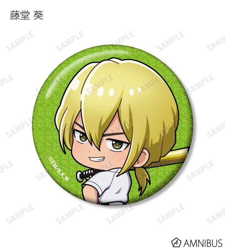 藤堂 葵、千早瞬平、土屋和季の描き起こしちびキャライラストをメインにデザインし、グリッター加工を施した缶バッジ3個セットに仕上げました。