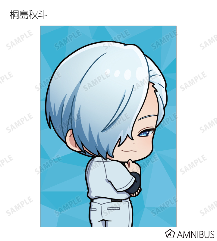 清峰葉流火、要 圭、藤堂 葵、千早瞬平、山田太郎、土屋和季、国都英一郎、巻田広伸、桐島秋斗の描き起こしちびキャライラストをメインにデザインし、ポストカード9枚セットに仕上げました。