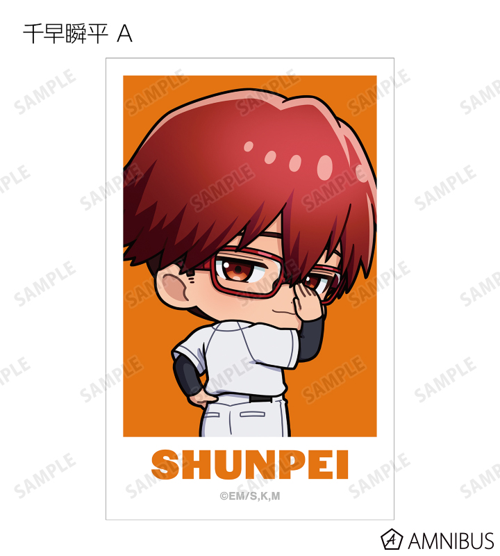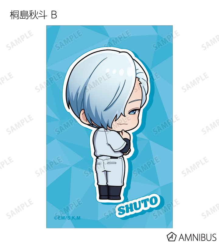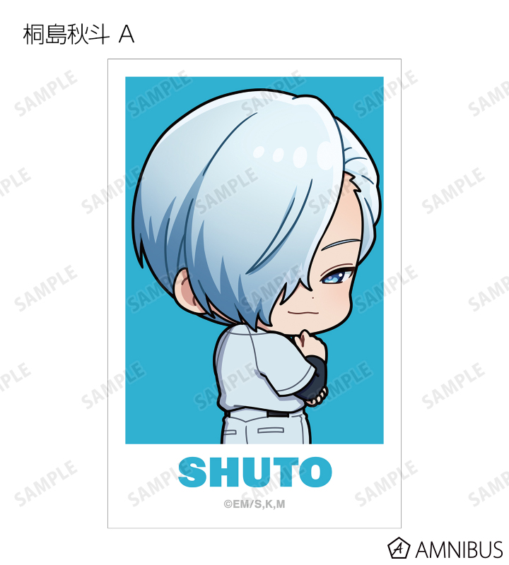 清峰葉流火、要 圭、藤堂 葵、千早瞬平、山田太郎、土屋和季、国都英一郎、巻田広伸、桐島秋斗の描き起こしちびキャライラストをメインにデザインし、イラストカードに仕上げました。