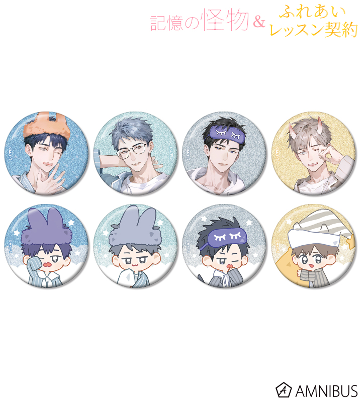 「記憶の怪物」&「ふれあいレッスン契約」より、トレーディンググリッター缶バッジの登場です。