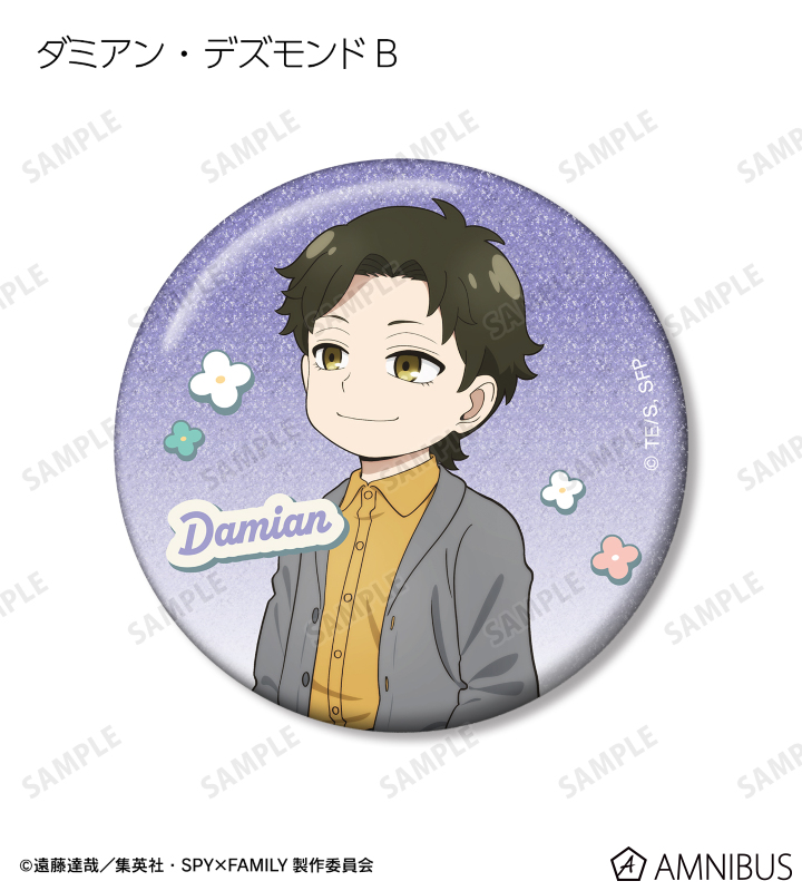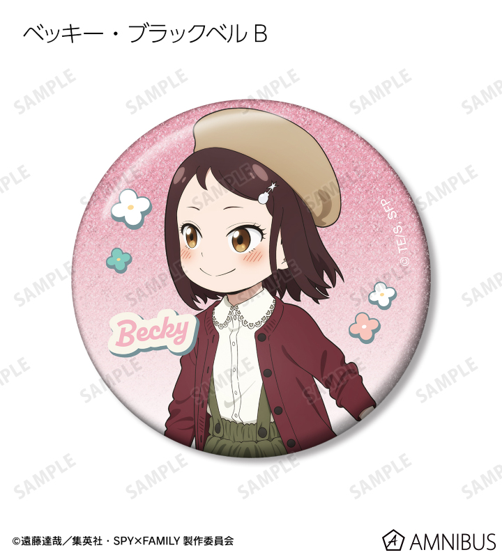 ロイド・フォージャー、アーニャ・フォージャー、ヨル・フォージャー、ボンド・フォージャー、ユーリ・ブライア、ダミアン・デズモンド、ベッキー・ブラックベルの描き下ろしイラストをグリッター加工を施した缶バッジに仕上げました。