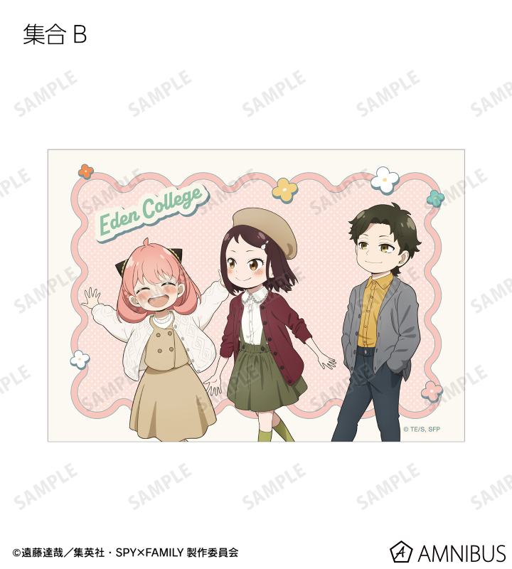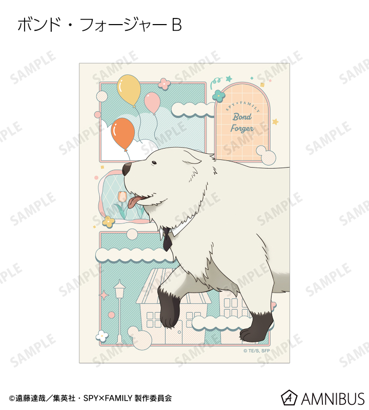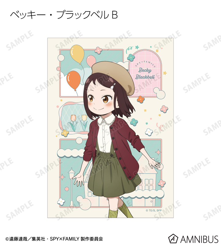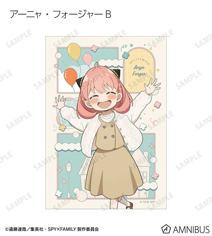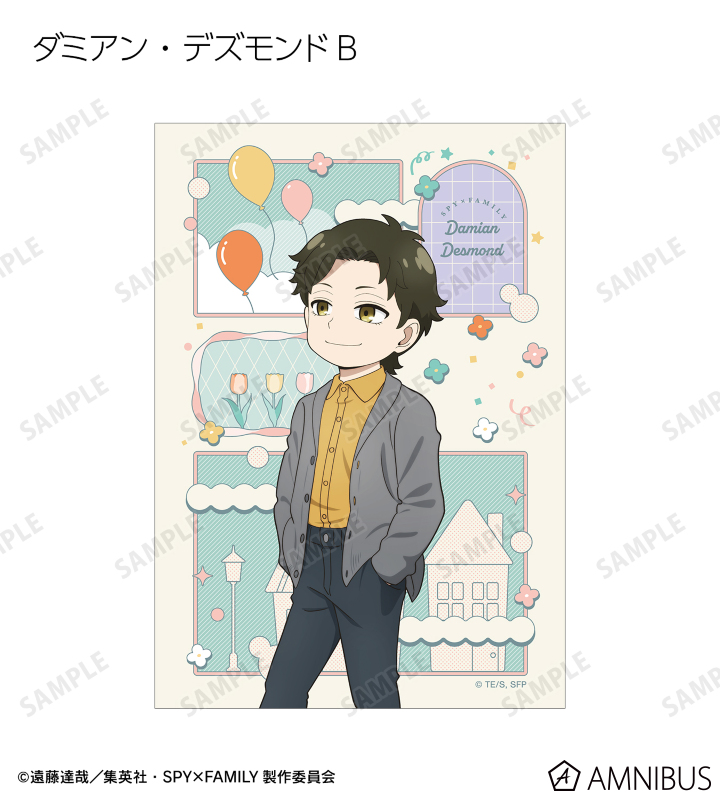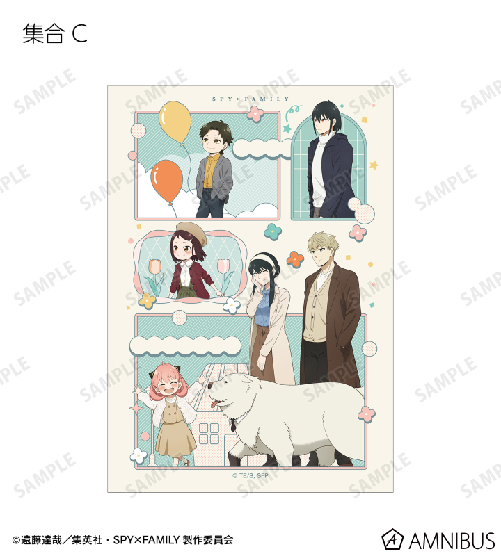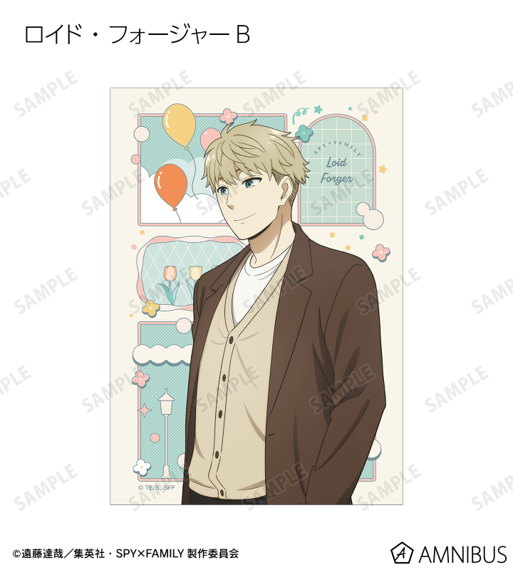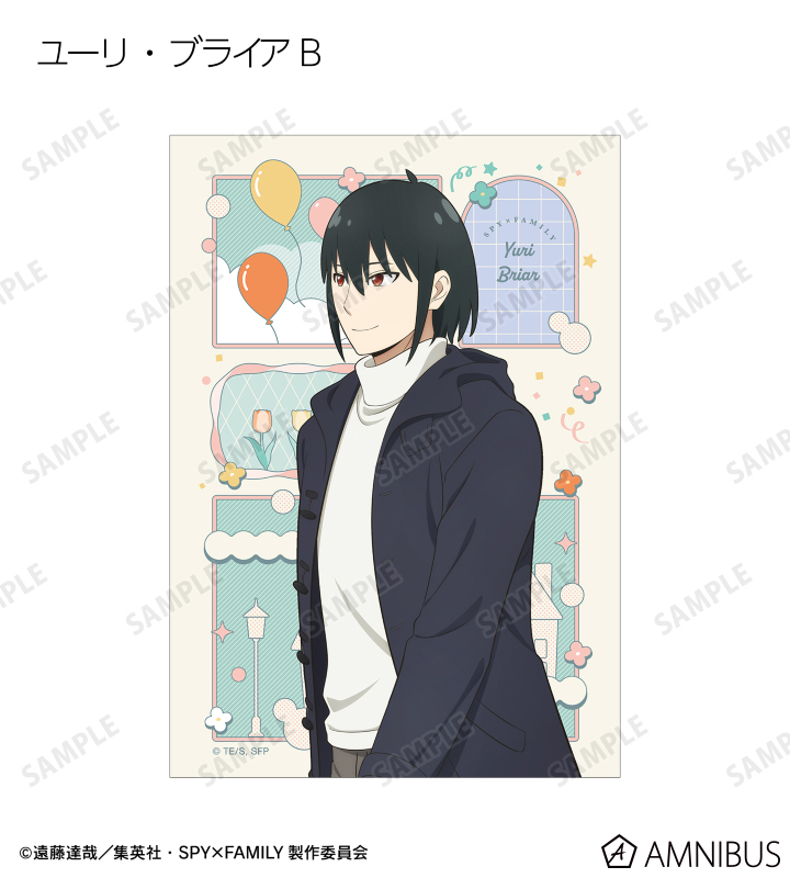 ロイド・フォージャー、アーニャ・フォージャー、ヨル・フォージャー、ボンド・フォージャー、ユーリ・ブライア、ダミアン・デズモンド、ベッキー・ブラックベルの描き下ろしイラストをブロマイドに仕上げました。