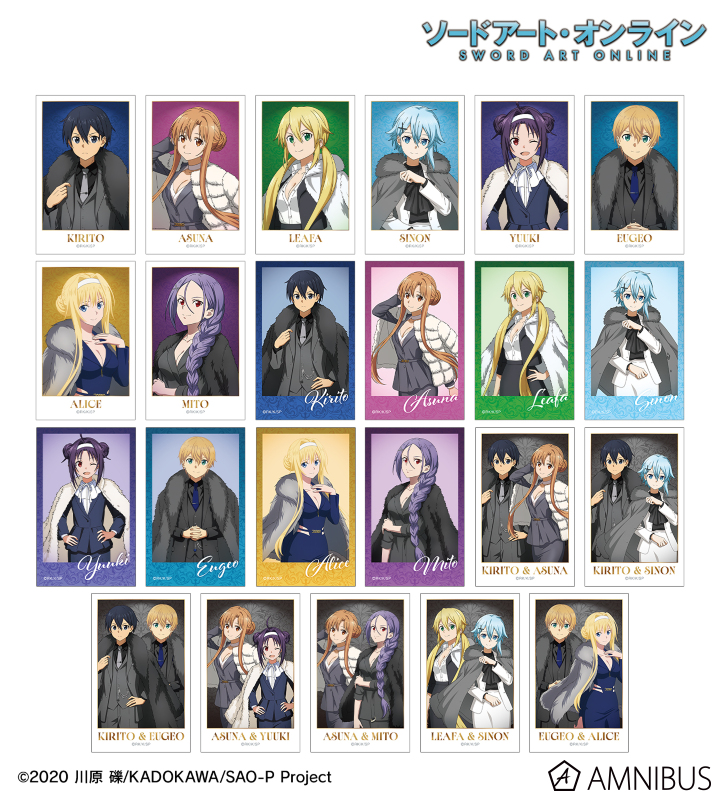 キリト、アスナ、リーファ、シノン、ユウキ、ユージオ、アリス、ミトの描き下ろしイラストをイラストカードに仕上げました。