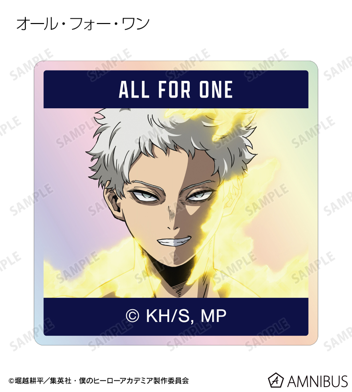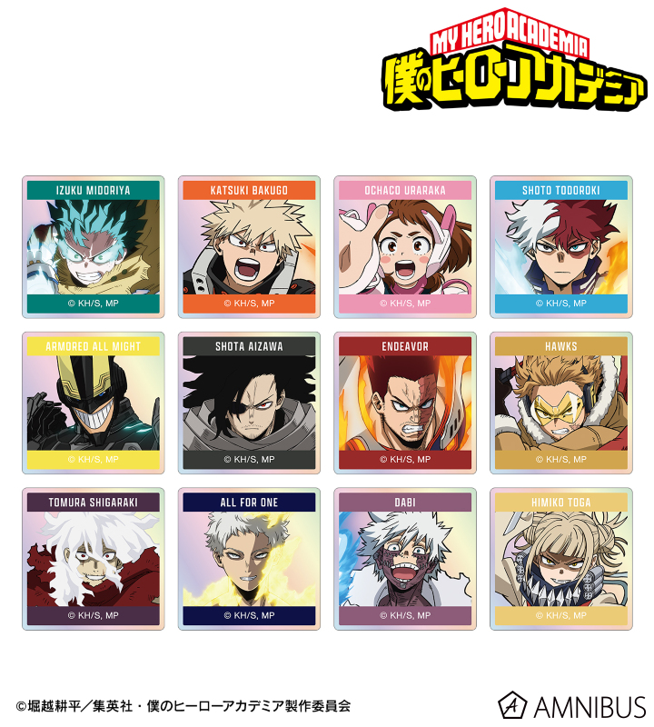 緑谷出久、爆豪勝己、麗日お茶子、轟焦凍、アーマード・オールマイト、相澤消太、エンデヴァー、ホークス、 死柄木弔、オール・フォー・ワン、荼毘、トガヒミコのビジュアルをオーロラアクリルタイルに仕上げました。