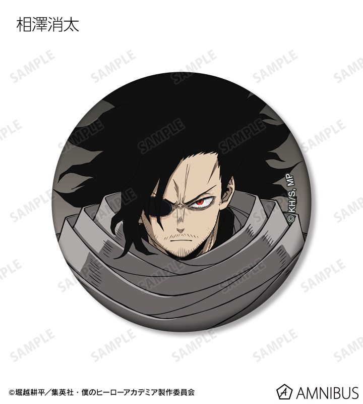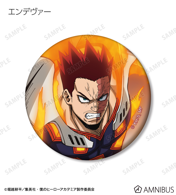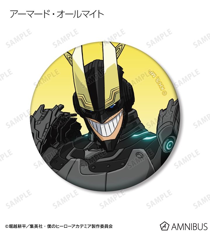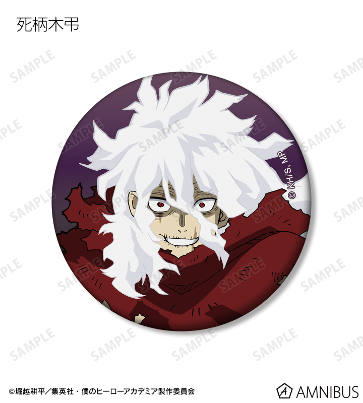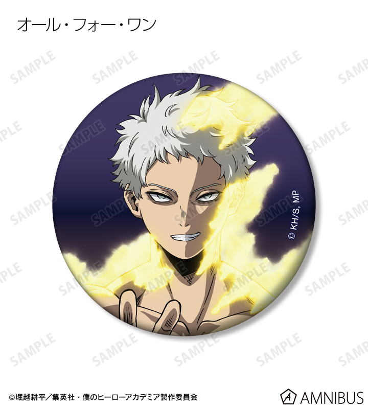 緑谷出久、爆豪勝己、麗日お茶子、轟焦凍、アーマード・オールマイト、相澤消太、エンデヴァー、ホークス、 死柄木弔、オール・フォー・ワン、荼毘、トガヒミコのビジュアルをマットな手触りの缶バッジに仕上げました。