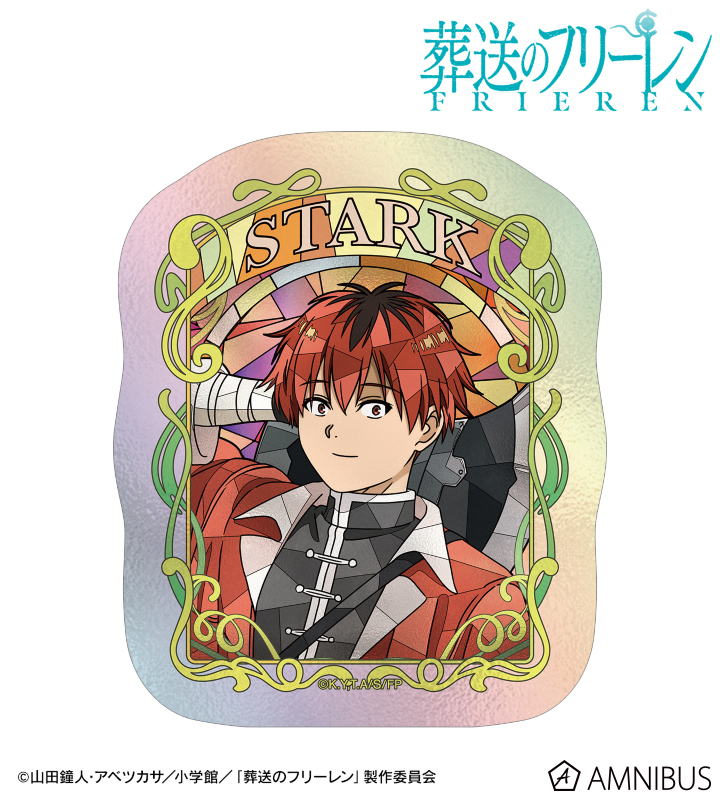 シュタルクのイラストを新たなタッチで魅力的に表現し、オーロラダイカットステッカーに仕上げました。