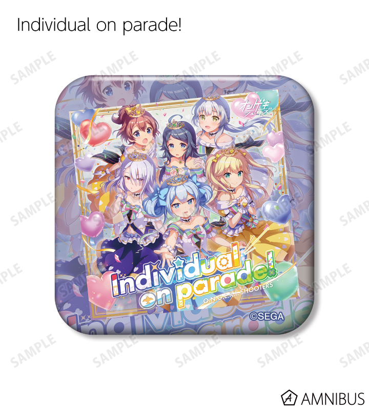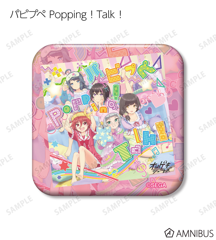 パピプペ Popping!Talk!、Individual on parade!、夏宵スターマイン、Starlight★Limited、MeteorSnow、Azucar、Zitronectar、Buck's Fizz、FestA of PandemoniuM、Handmade Good Dayの楽曲ジャケットイラストをスクエア缶バッジに仕上げました。