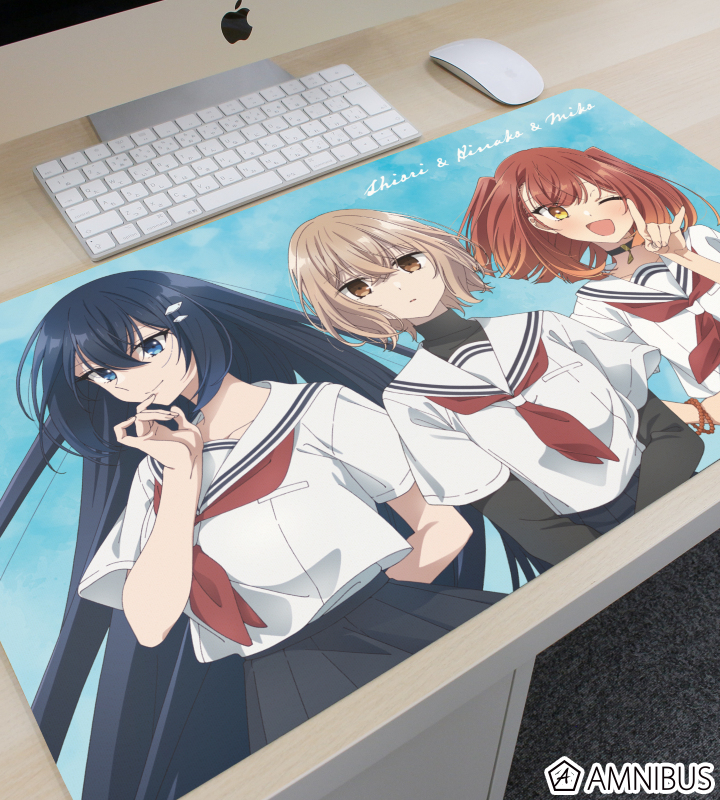 八百歳比名子、近江汐莉、社 美胡のイラストをマルチデスクマットに仕上げました。