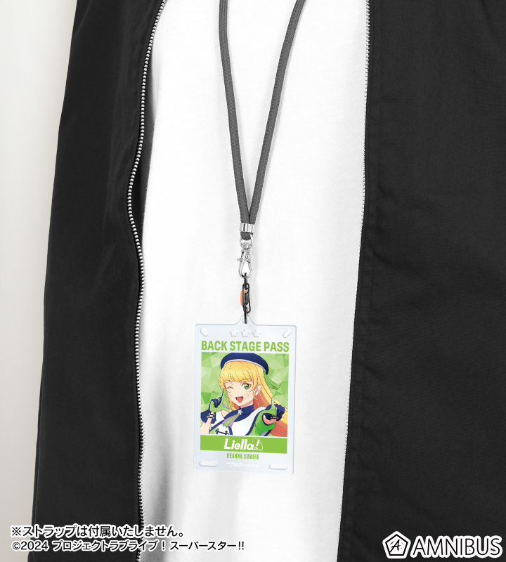 平安名すみれの描き下ろしイラスト、メンバーの名前、Liella!のロゴをカード型のアクリルキーホルダーに仕上げました。