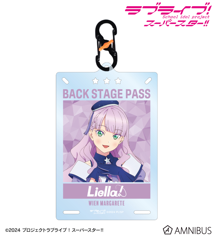 ウィーン・マルガレーテの描き下ろしイラスト、メンバーの名前、Liella!のロゴをカード型のアクリルキーホルダーに仕上げました。