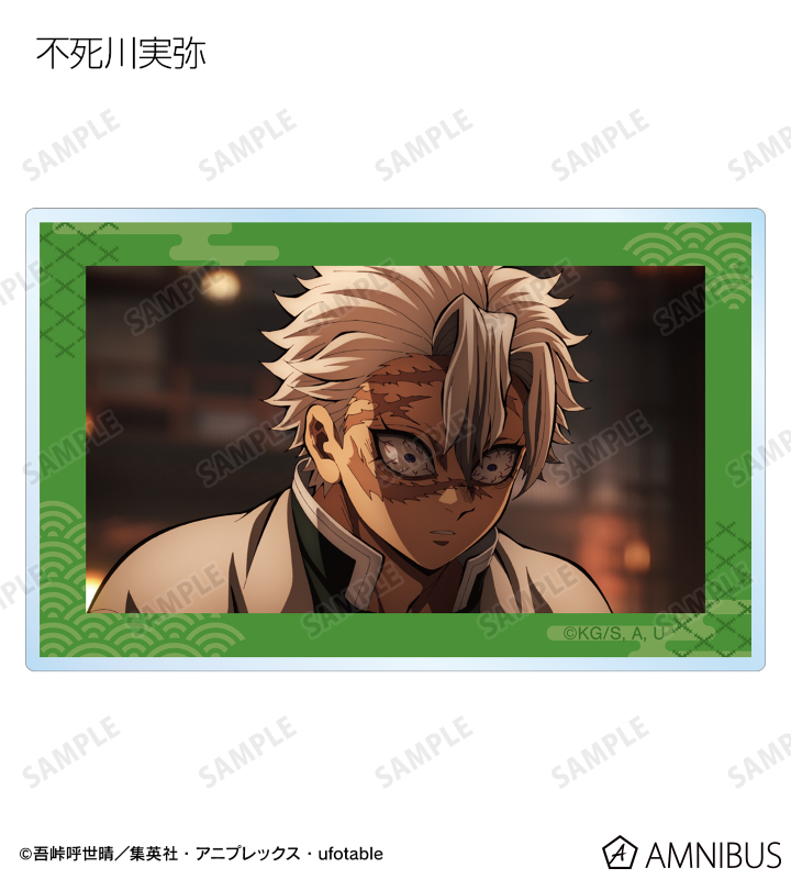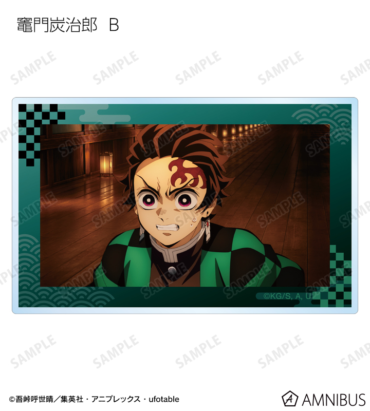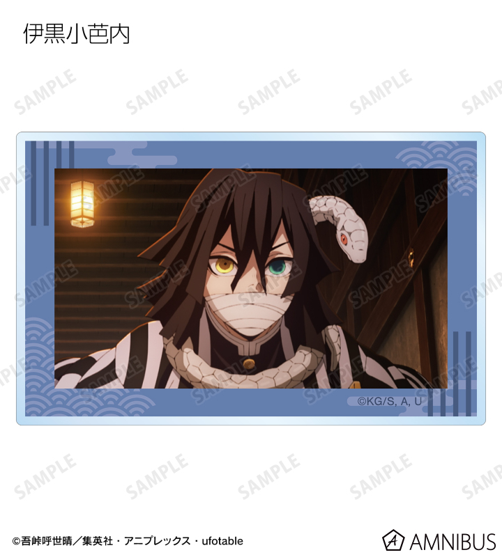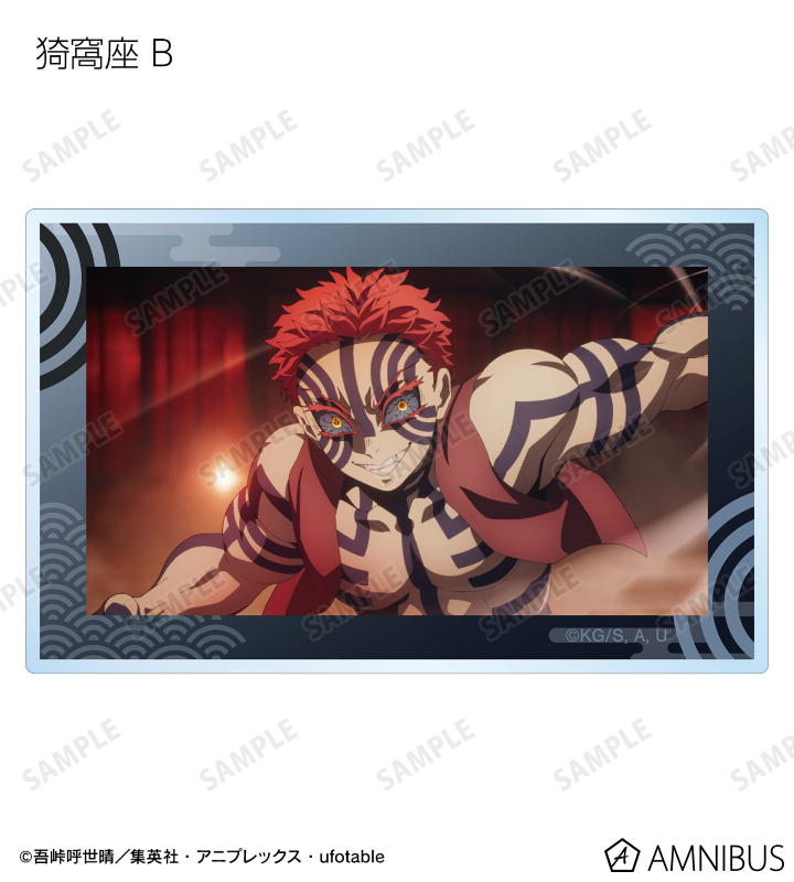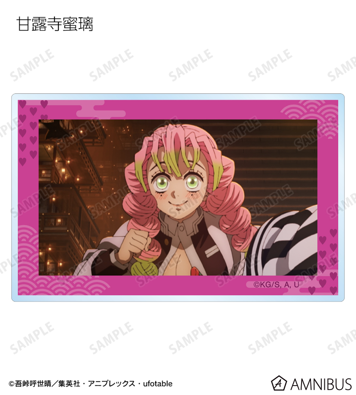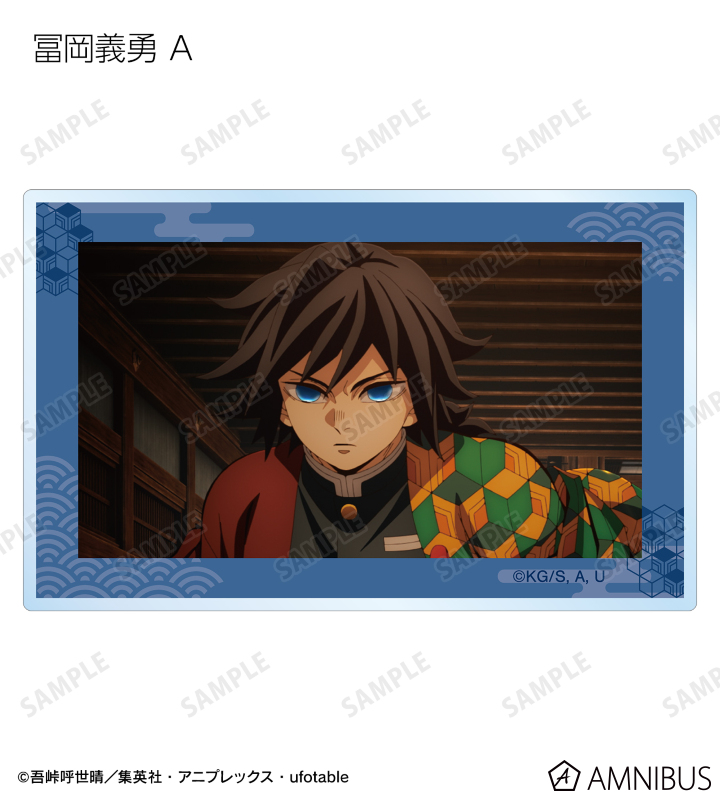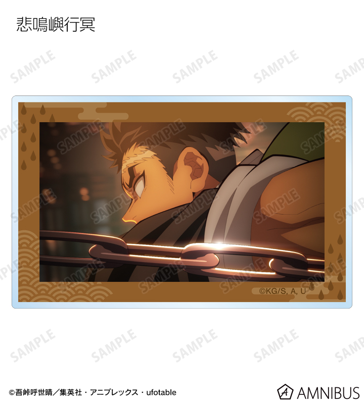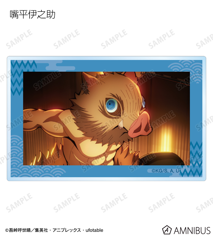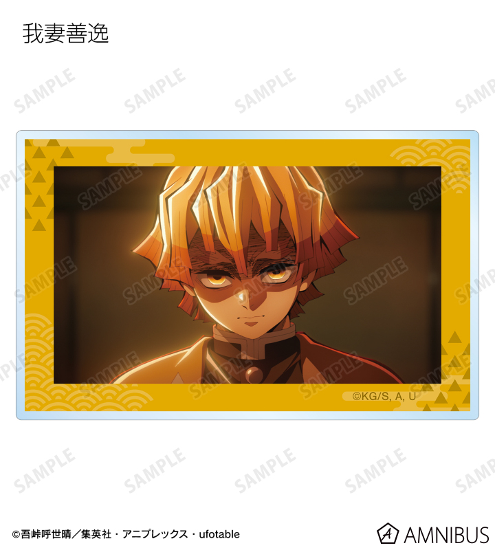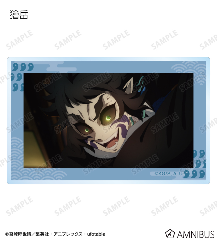 竈門炭治郎、我妻善逸、嘴平伊之助、冨岡義勇、胡蝶しのぶ、甘露寺蜜璃、時透無一郎、悲鳴嶼行冥、不死川実弥、伊黒小芭内、童磨、猗窩座、獪岳の印象的なシーンをアクリルカードに仕上げました。