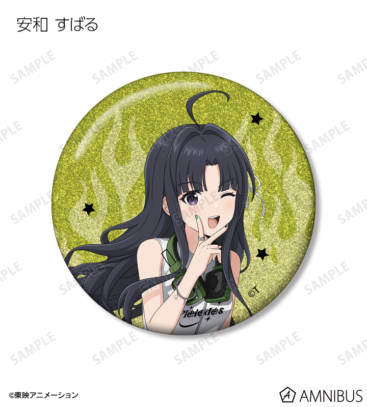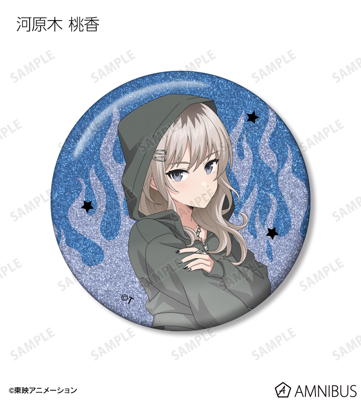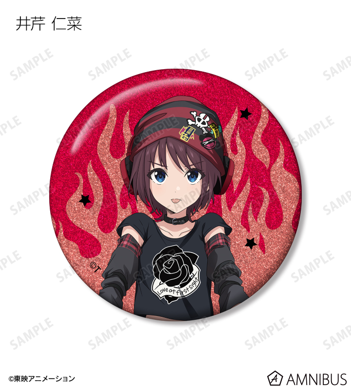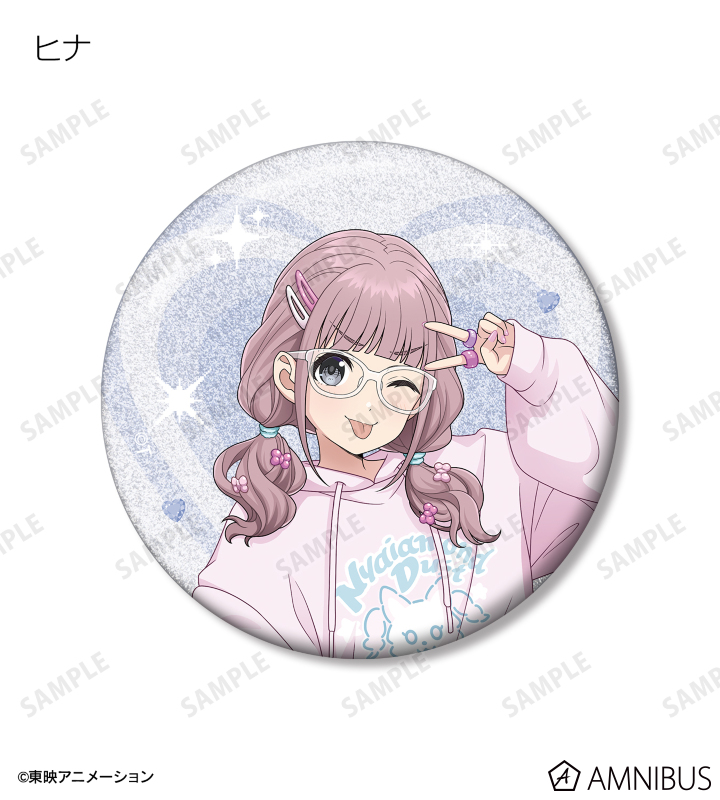 井芹 仁菜、河原木 桃香、安和 すばる、海老塚 智、ルパ、ヒナ、リン、ナナ、アイの描き下ろしイラストをグリッター加工を施した缶バッジに仕上げました。