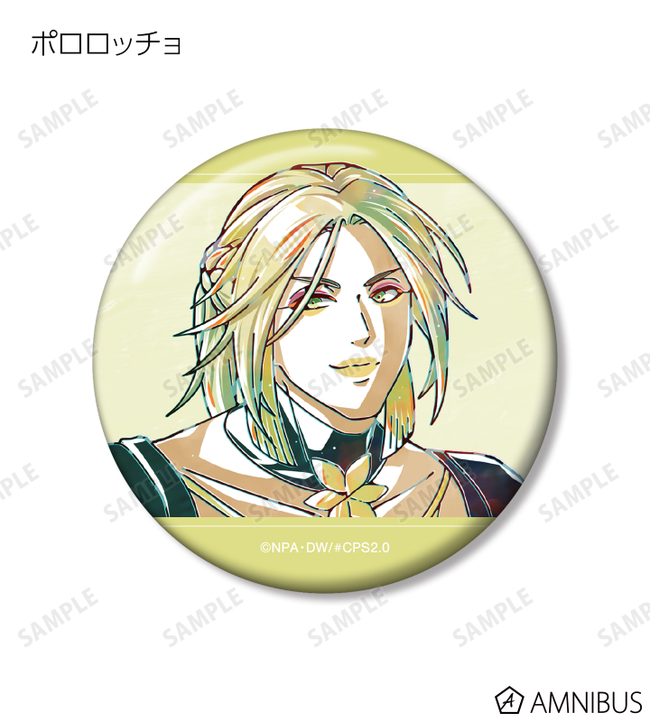 零夜、ジャンヌ、十文字アタリ、ジャスティス、双挽乃保、ルチアーノ、深川まとい、コクリコ、アダム、メグメグ、ポロロッチョ、ソーン、デルミン、トマスのイラストを新たなタッチで魅力的に表現し、缶バッジに仕上げました。