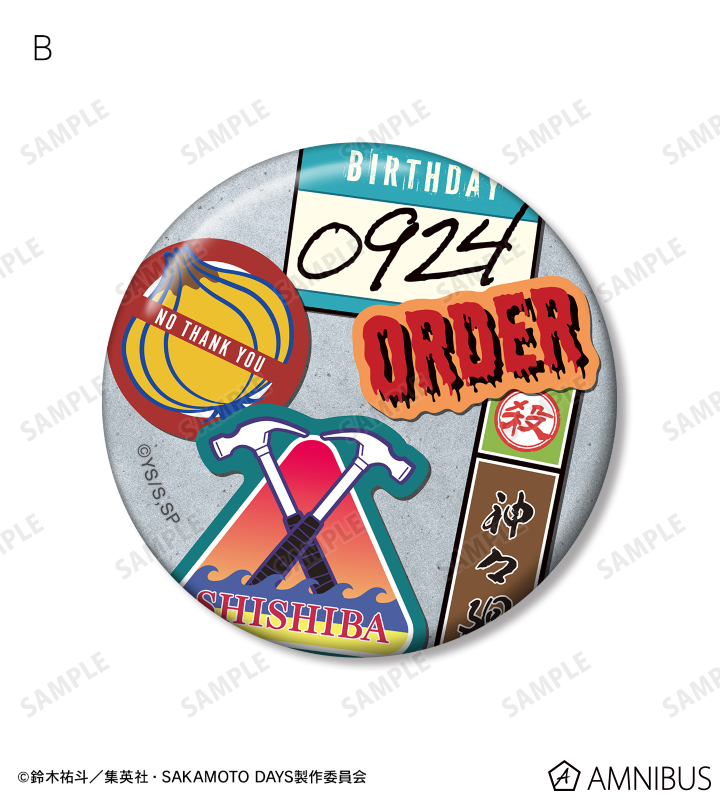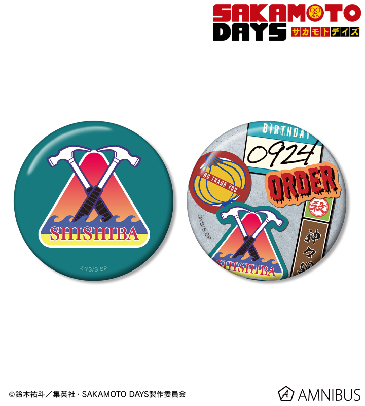 TVアニメ『SAKAMOTO DAYS』から日常で使える統一感をテーマにしたデザインシリーズ「ar-Unity」のアイテム「神々廻 ar-Unity モチーフ 缶バッジ2個セット」の登場です。