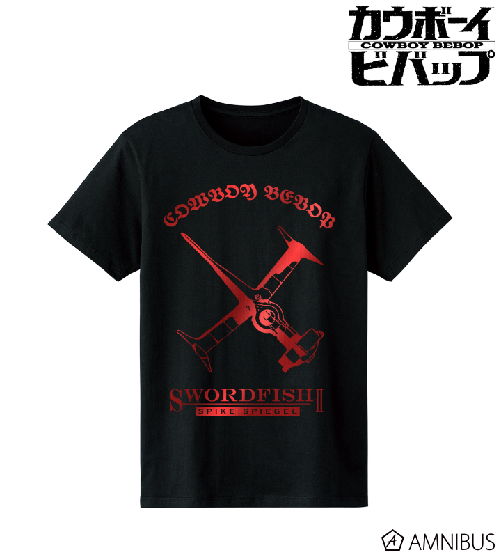 ソードフィッシュと作品タイトル、スパイク・スピーゲルの名前などと組み合わせ、赤い箔プリントで仕上げたメタリックに輝くデザインです。