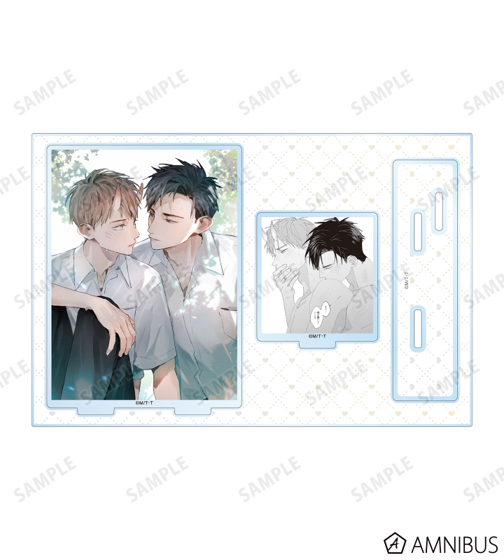 陸野 延賀、景山 侑の原作イラスト、原作コマイラストをパーツ付きのBIGなアクリルスタンドに仕上げました。