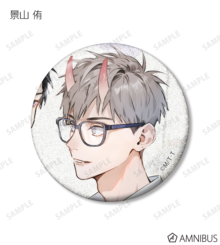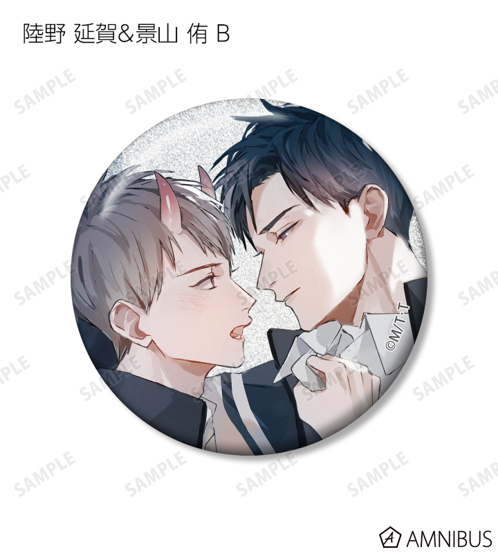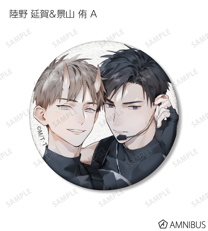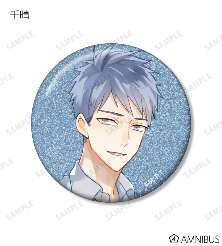 千晴、千澄、陸野 延賀、景山 侑の原作イラストをグリッター加工を施した缶バッジに仕上げました。