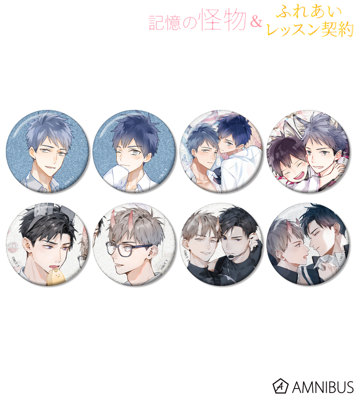 「記憶の怪物」&「ふれあいレッスン契約」より、トレーディンググリッター缶バッジの登場です。