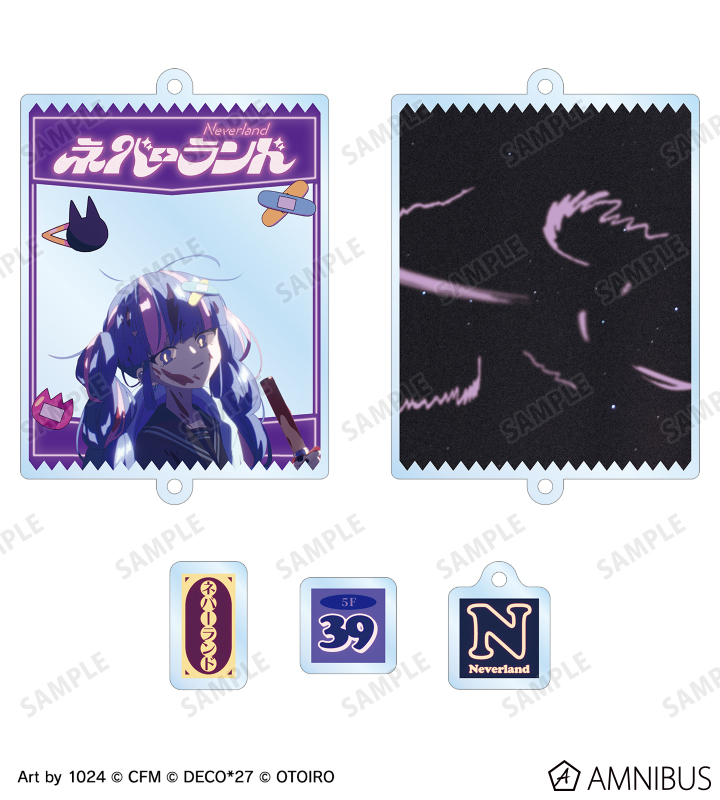 ネバーランドのMVイラスト、モチーフをお菓子のようなパッケージのデザインの、シャカシャカアクリルキーホルダーに仕上げました。