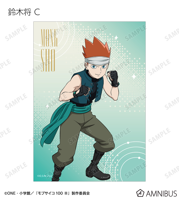 影山茂夫、霊幻新隆、影山律、花沢輝気、鈴木将の描き下ろしイラストをブロマイドに仕上げました。